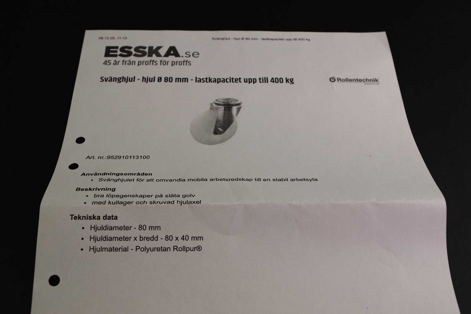 Bilder SVÄNGHJUL 4st. D:80 mm Lastkapacitet 400 kg Nytt OBS! 25% moms tillkommer på klubbat pris.