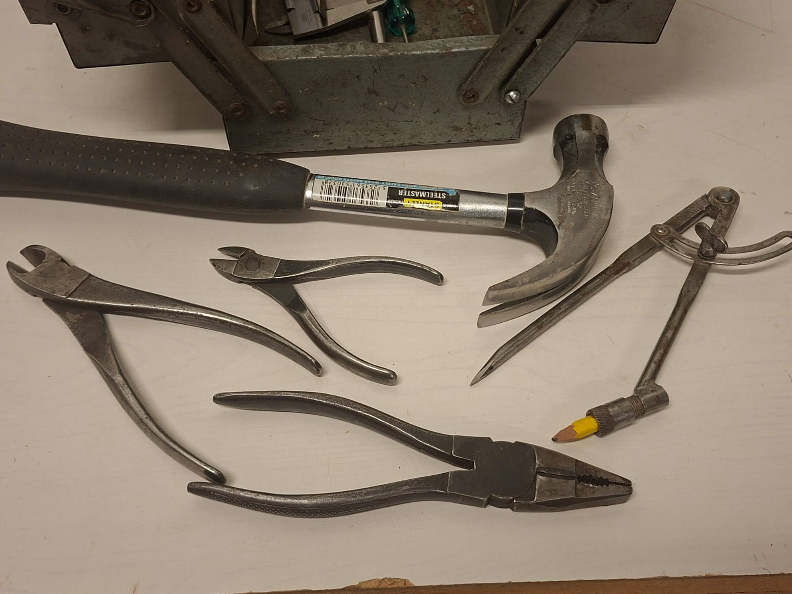 Bilder VERKTYGSLÅDA, hammare, kniv, skjutmått mm