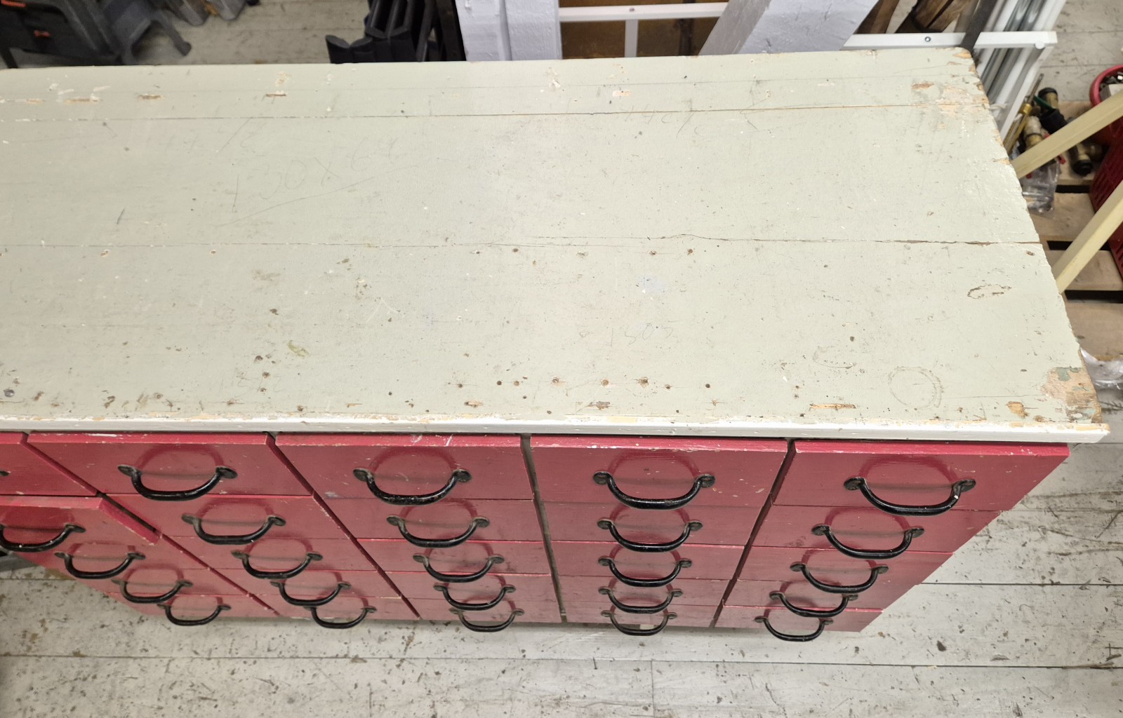 Bilder AFFÄRSDISK, 25 st lådor med handtag i svart metall, 130 x 106 x 52 cm