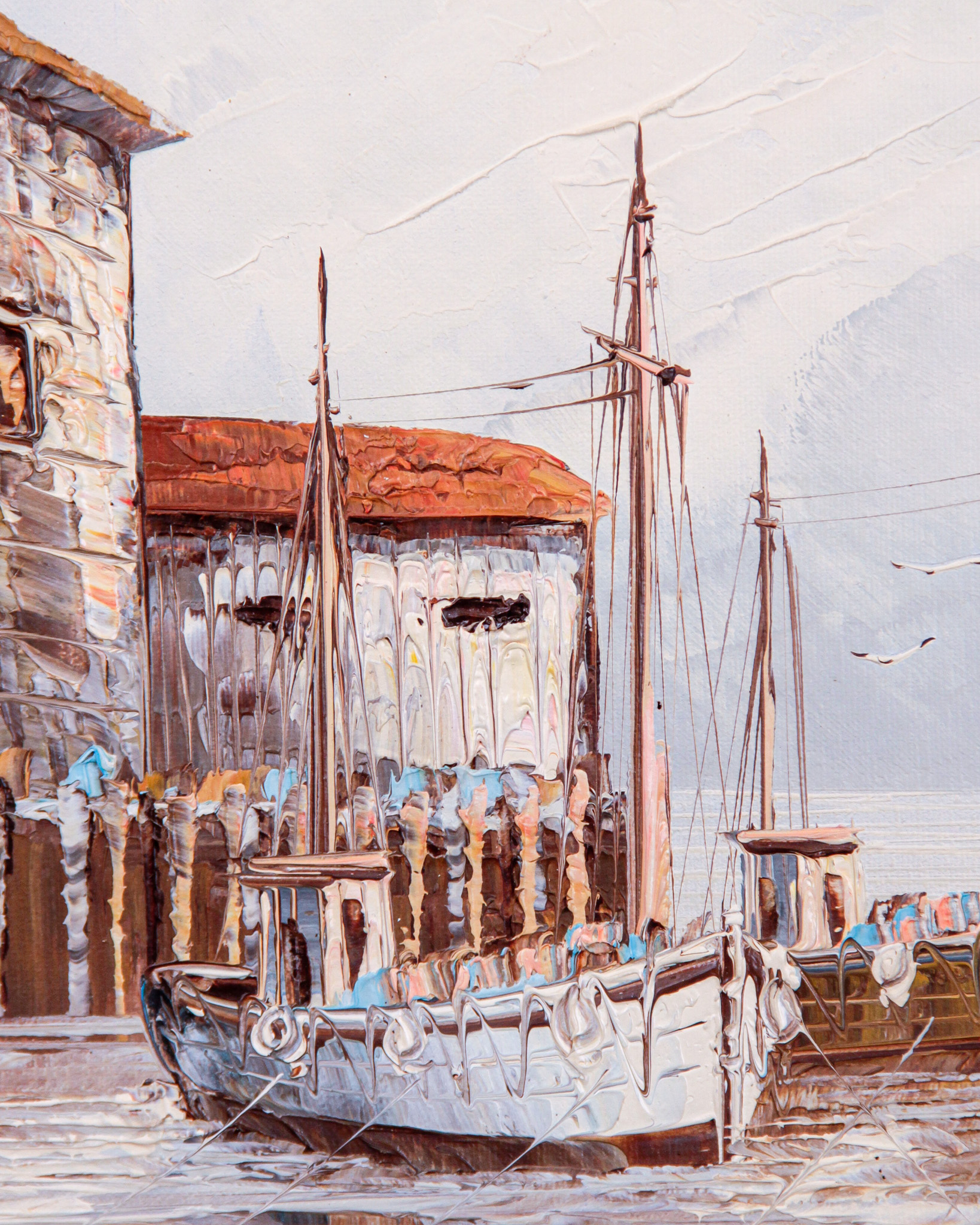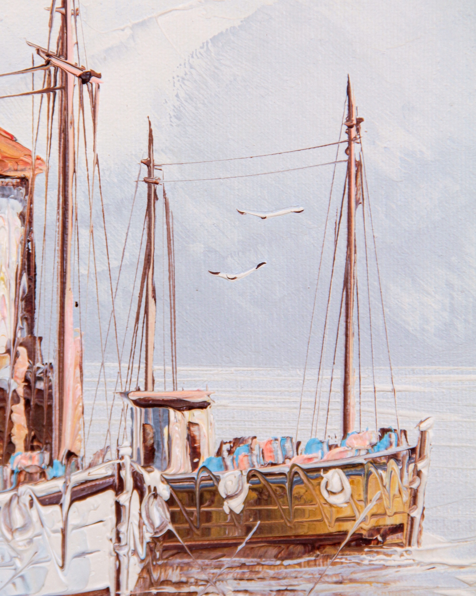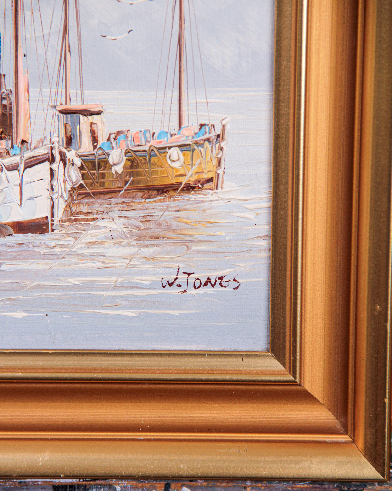 Olja på duk, båtmotiv, signerad W Jones