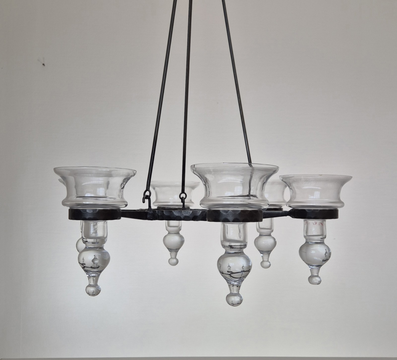 BERTIL VALLIEN, BODA, Ljuskrona 70-tal, smide och klarglas