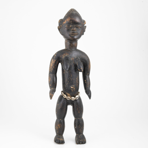 Skuret svärtat trä, i form av kvinnofigur, dekor med snäckor, höjd 54 cm