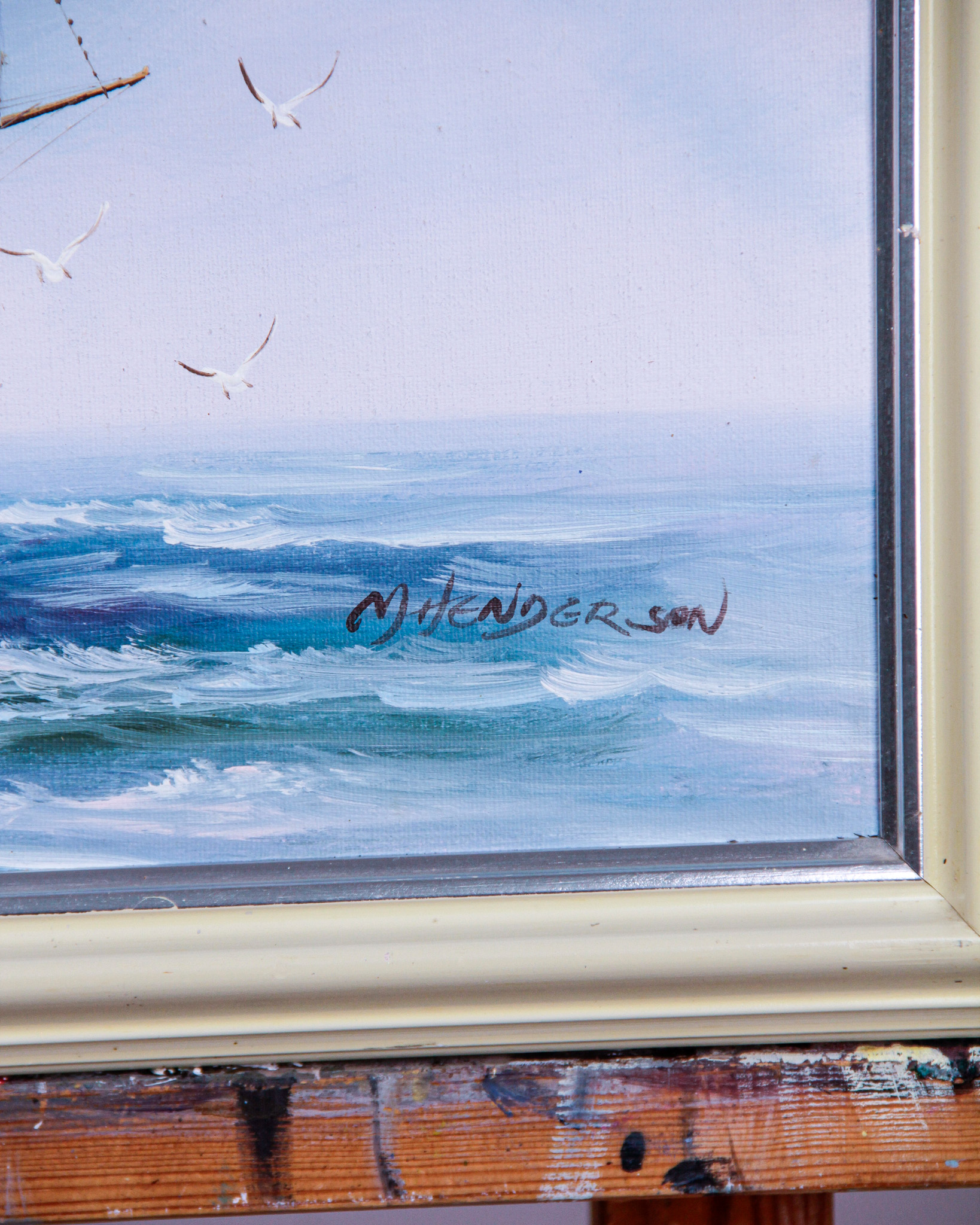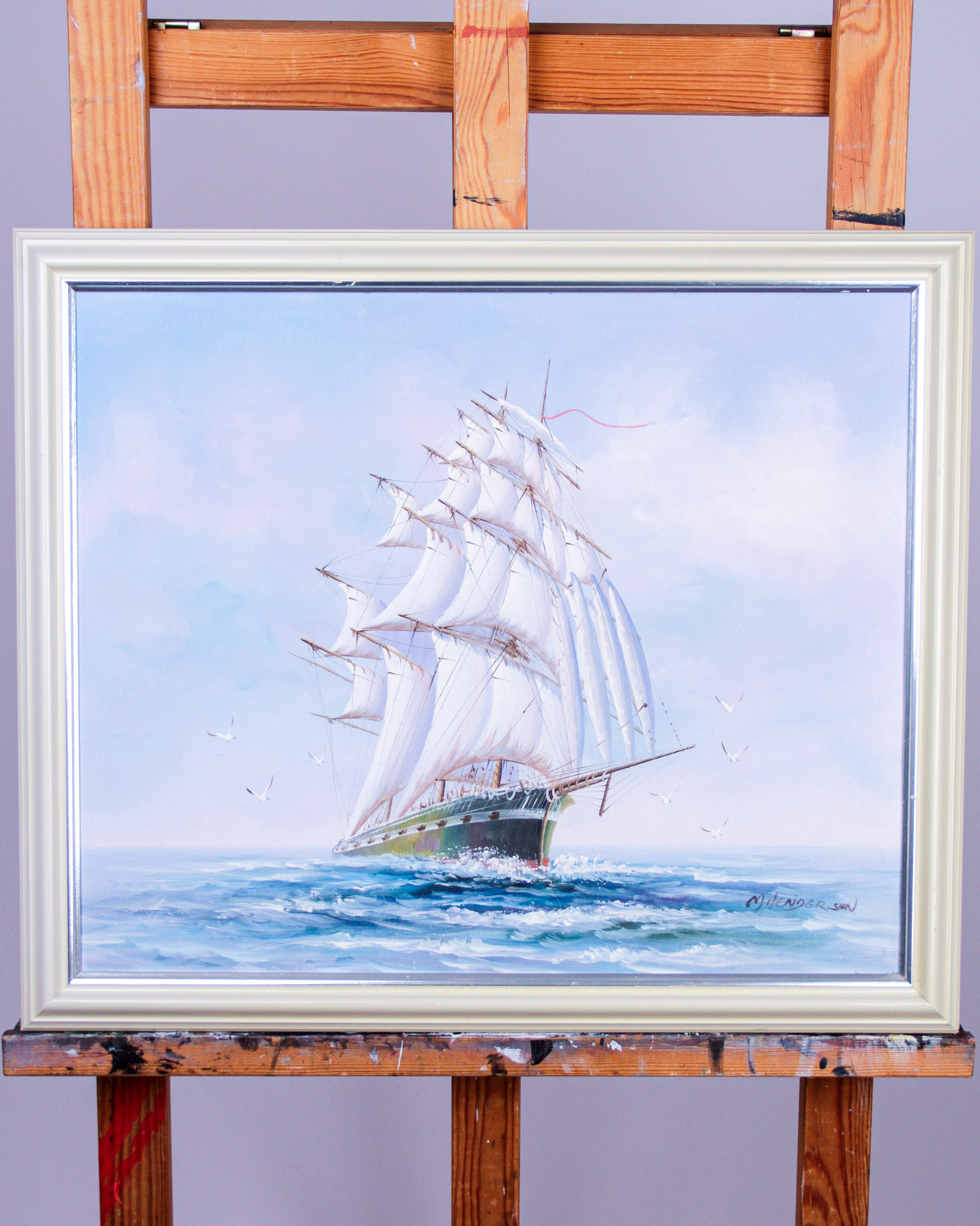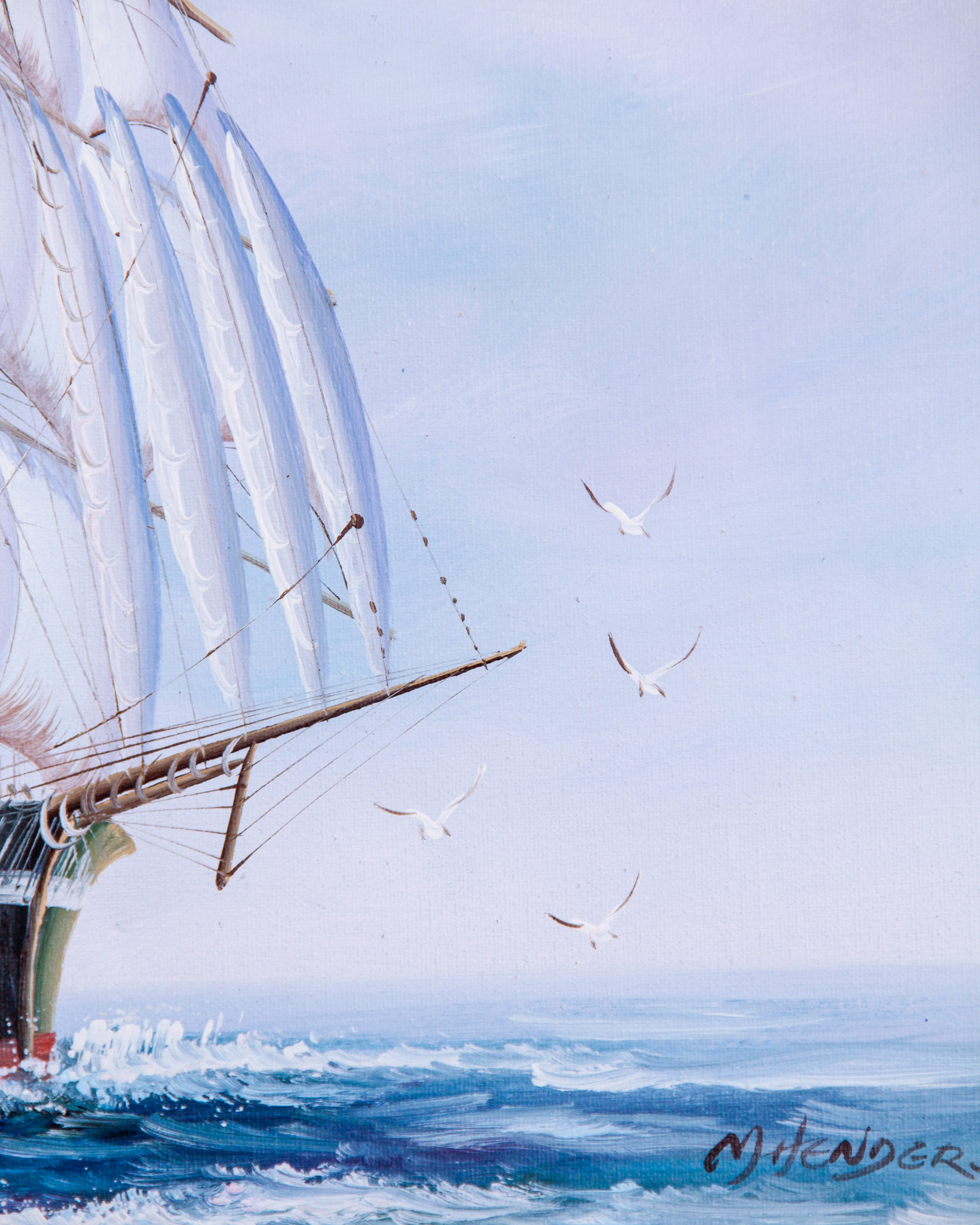 Olja på duk, marint motiv, oidentifierad konstnär, signerad M Henderson
