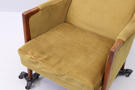 Bilder Fåtölj, 1950-tal, karmar och ben i teak, fast stoppad klädsel med lös sittdyna