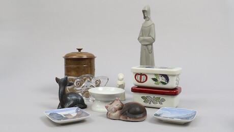 Bilder Figuriner, burkar, ljusstake, bla Rörstrand, Nao, Royal Copenhagen,