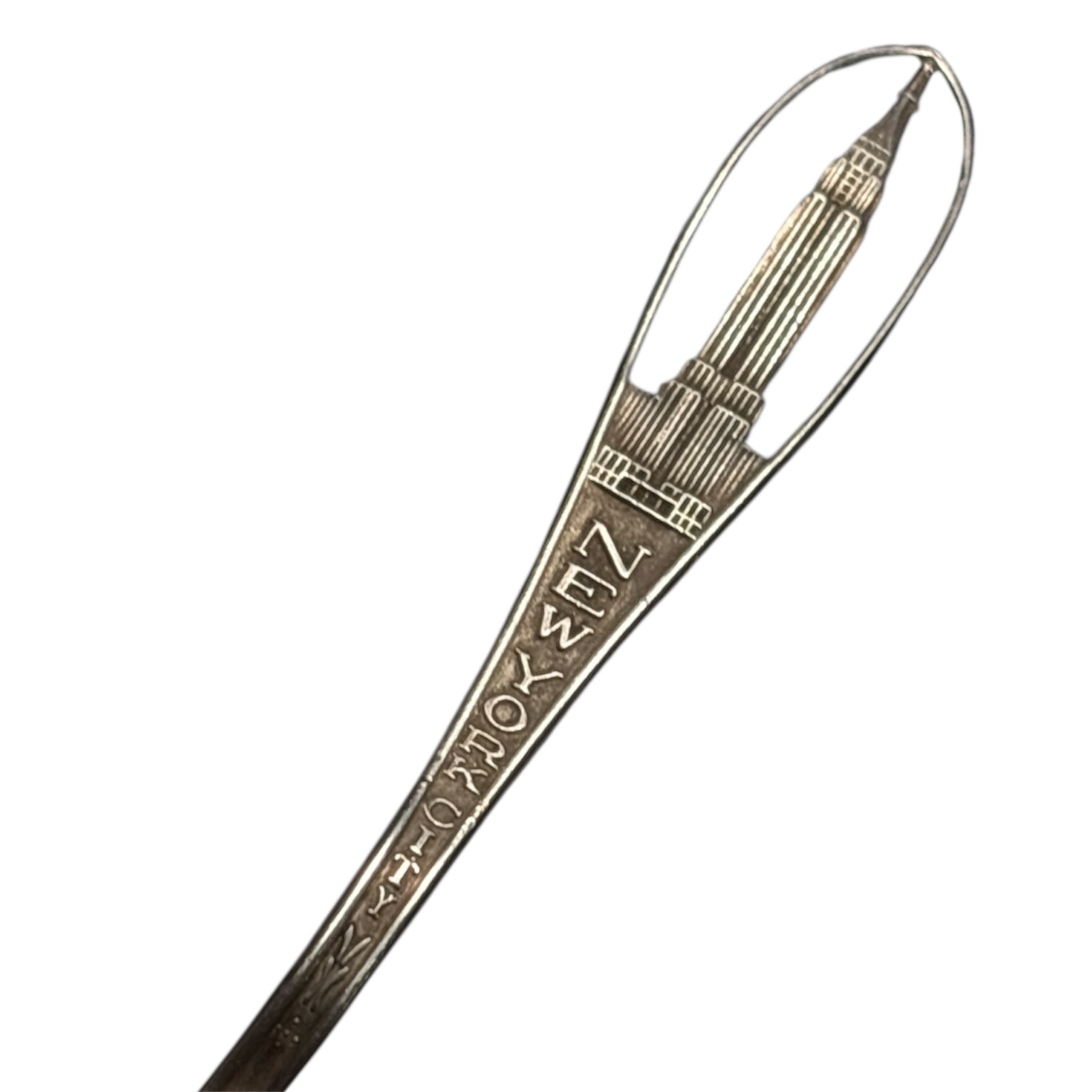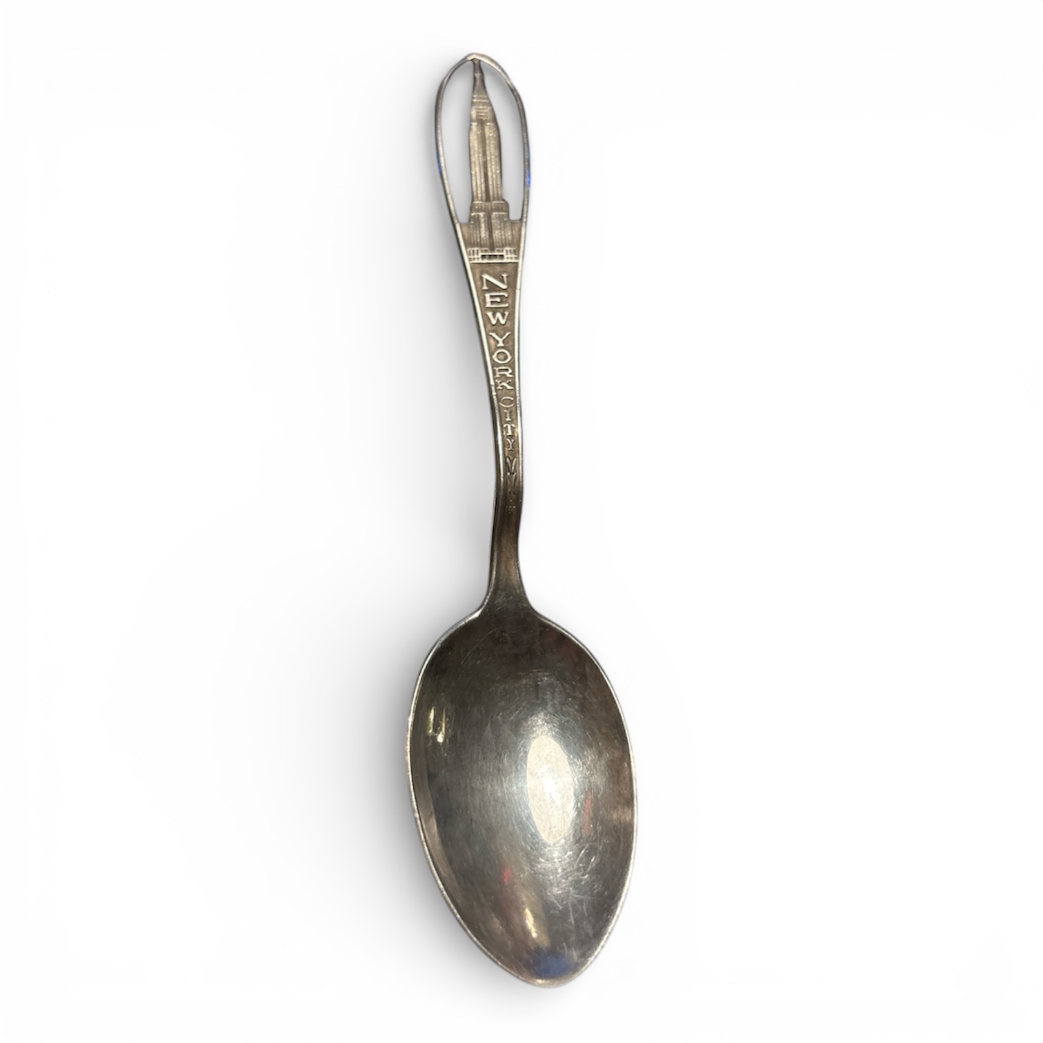 En klassisk souvenirsked i äkta sterlingsilver, tillverkad av det amerikanska företaget Enco Inc.. Skeden har en detaljerad utstansad dekor i skaftet föreställande Empire State Building, med texten "NEW YORK CITY" vertikalt graverad längs byggnaden. En typisk samlarsked från mitten av 1900-talet.