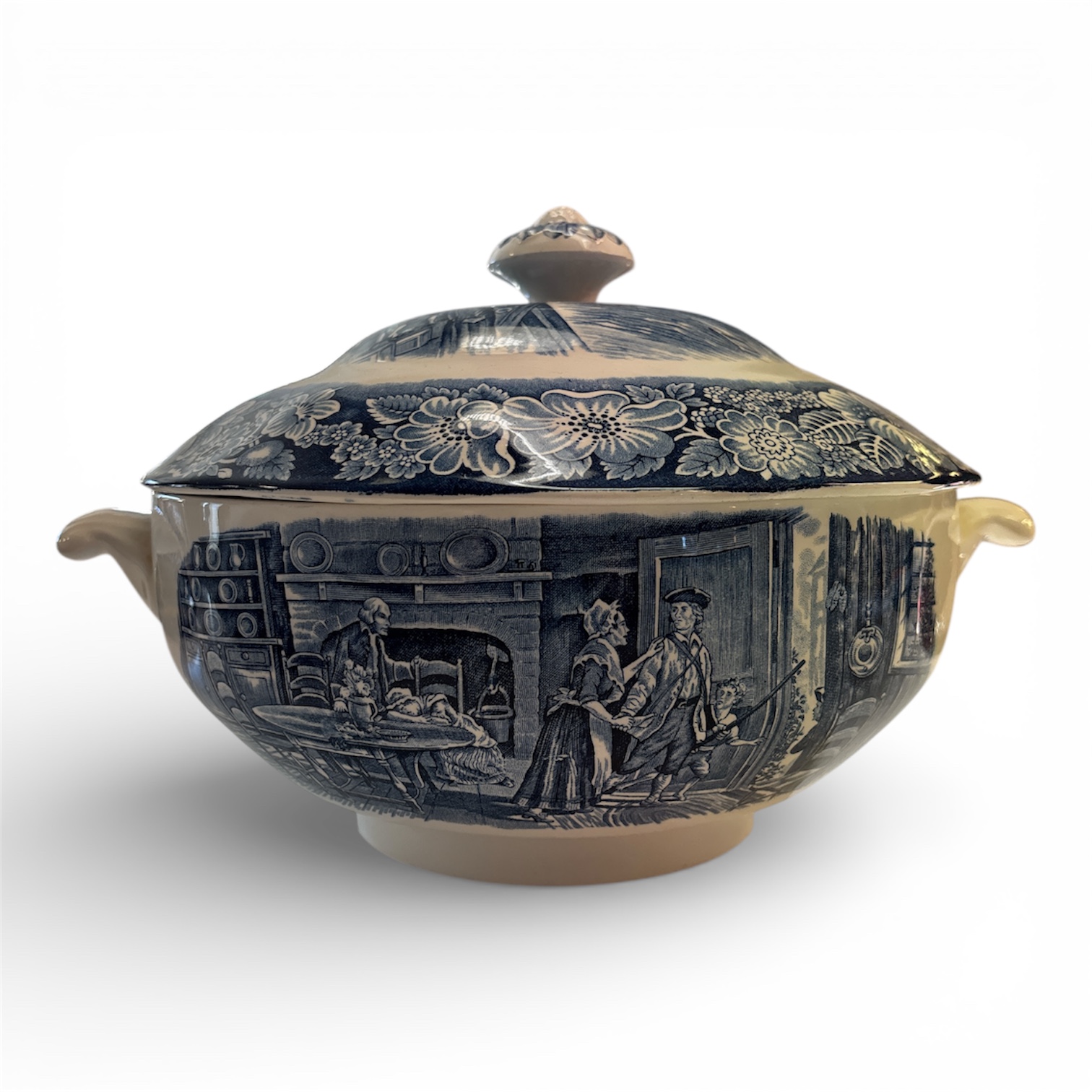 Bilder Lockskål / terrin i blåvitt ironstone – Liberty Blue, “Boston Tea Party”