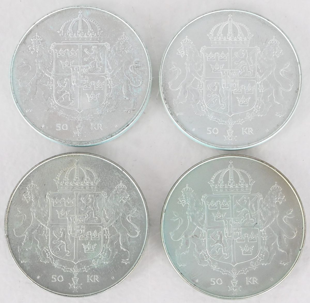 Auktioner Mynt & Medaljer 4 st Jubileumsmynt, 50 kronor, Konung Carl XVI Gustaf Drottning Silvia, 1976, Silver