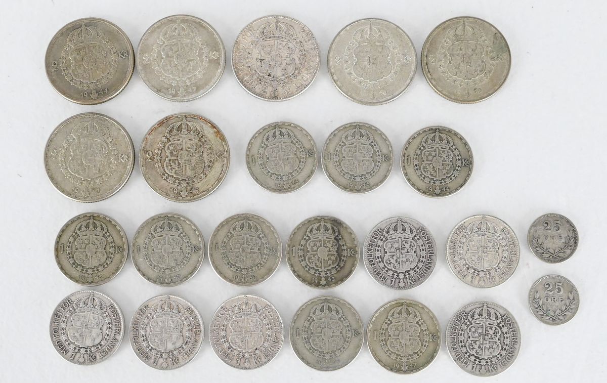 Bilder 24 st silvermynt, Gustaf V, Sverige
