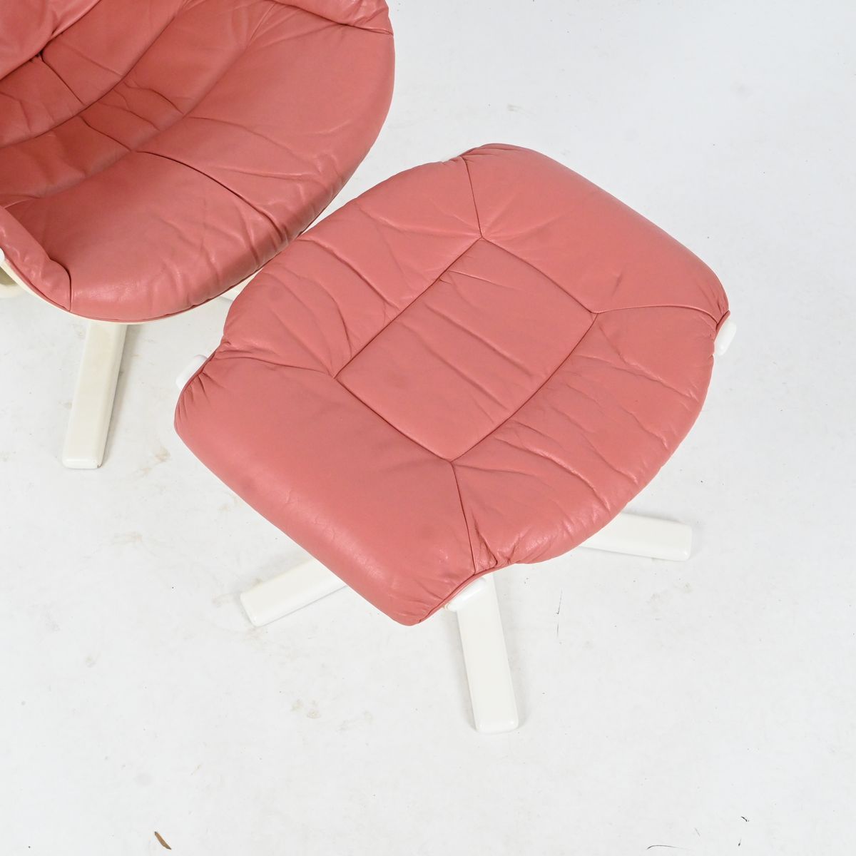 Fåtölj med fotpall, rosa