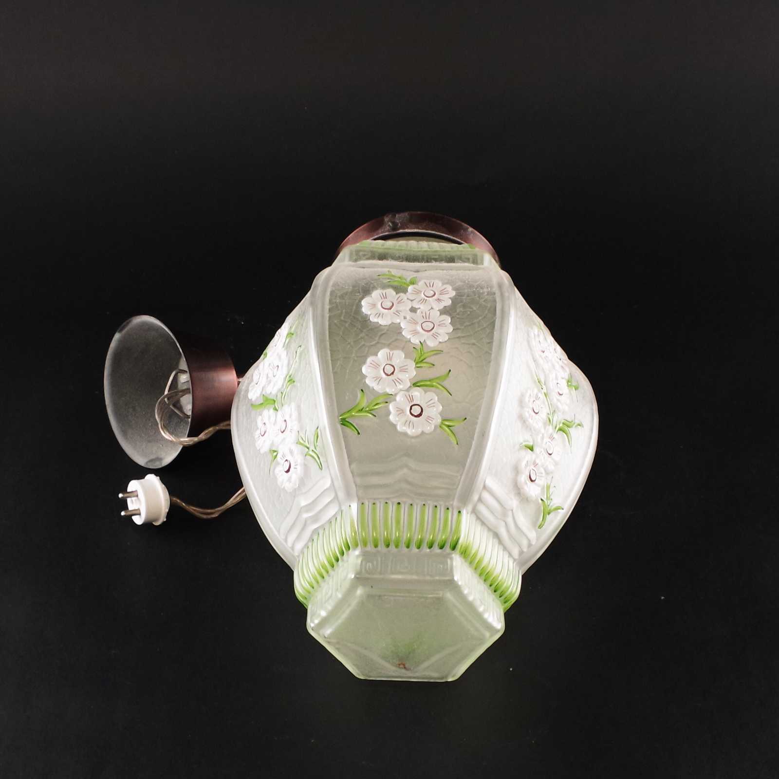 Bilder HALLAMPEL äldre, glas, elektrisk. H:30cm. B:18cm.