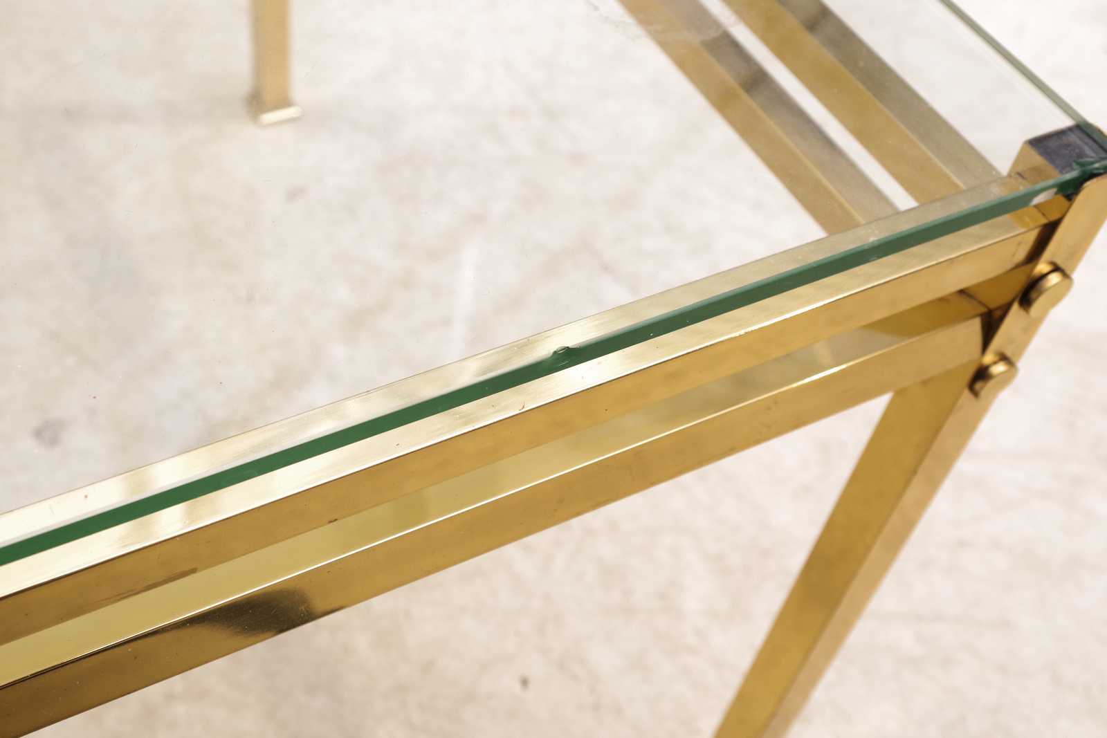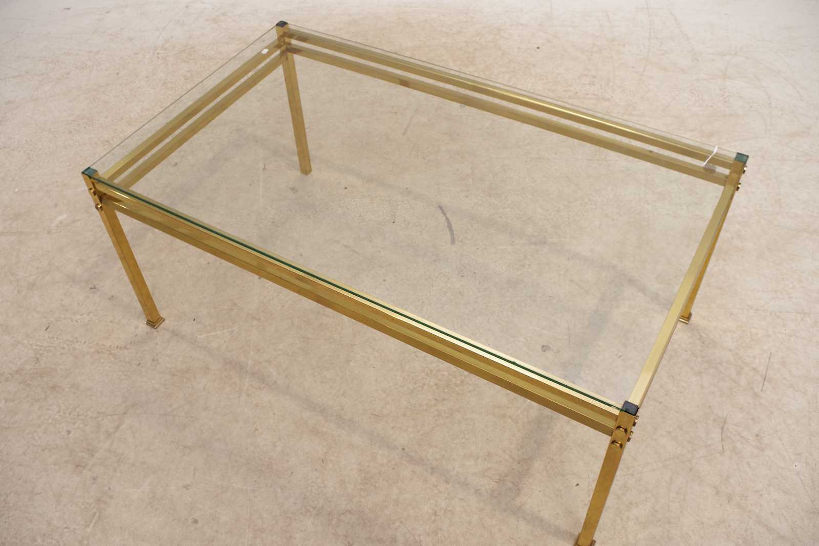 SOFFBORD mässing och glas, 1900-talets andra hälft. H:52x 120x 70cm. mindre nagg på glasskiva