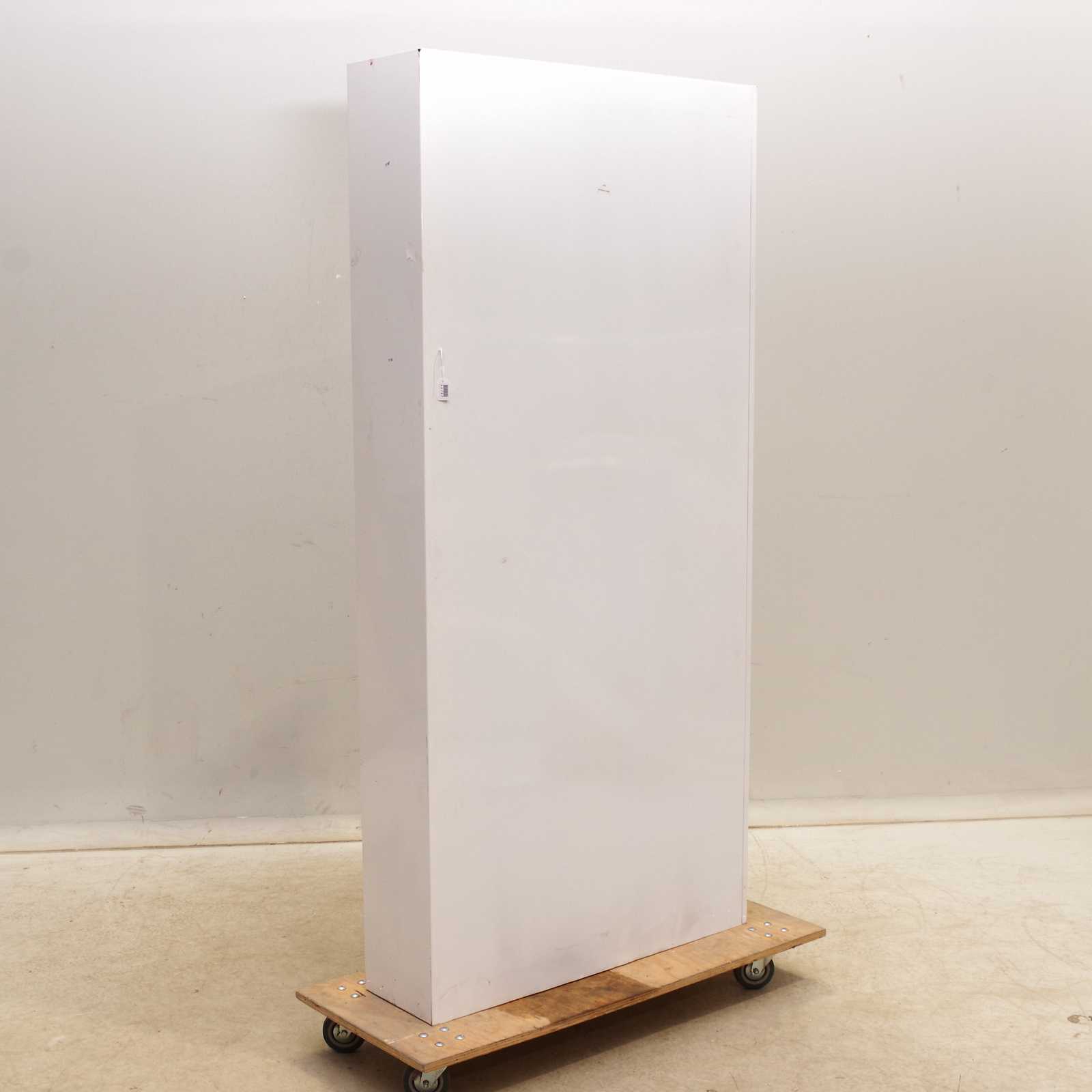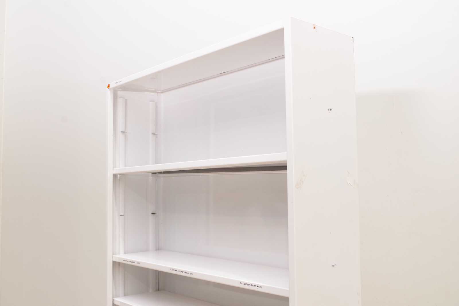 Auktioner FÖRVARINGSHYLLA plåt H:200x 95x 26cm. bruksslitage. Obs! 25% moms tillkommer på klubbat pris.