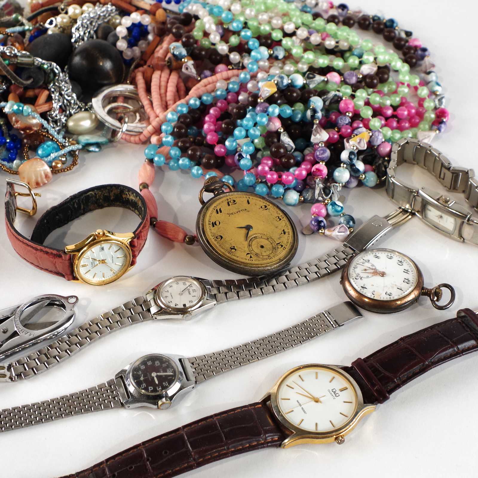 Bilder Parti SMYCKEN med mera bl.a. fickur & mormorsur i silver. (fickur defekt)
