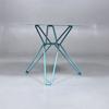 Soffbord från Massproductions, modell Tio formgiven av Chris Martin. Den runda bordsskivan vilar på ett metallunderrede med smala, pulverlackerade stag.