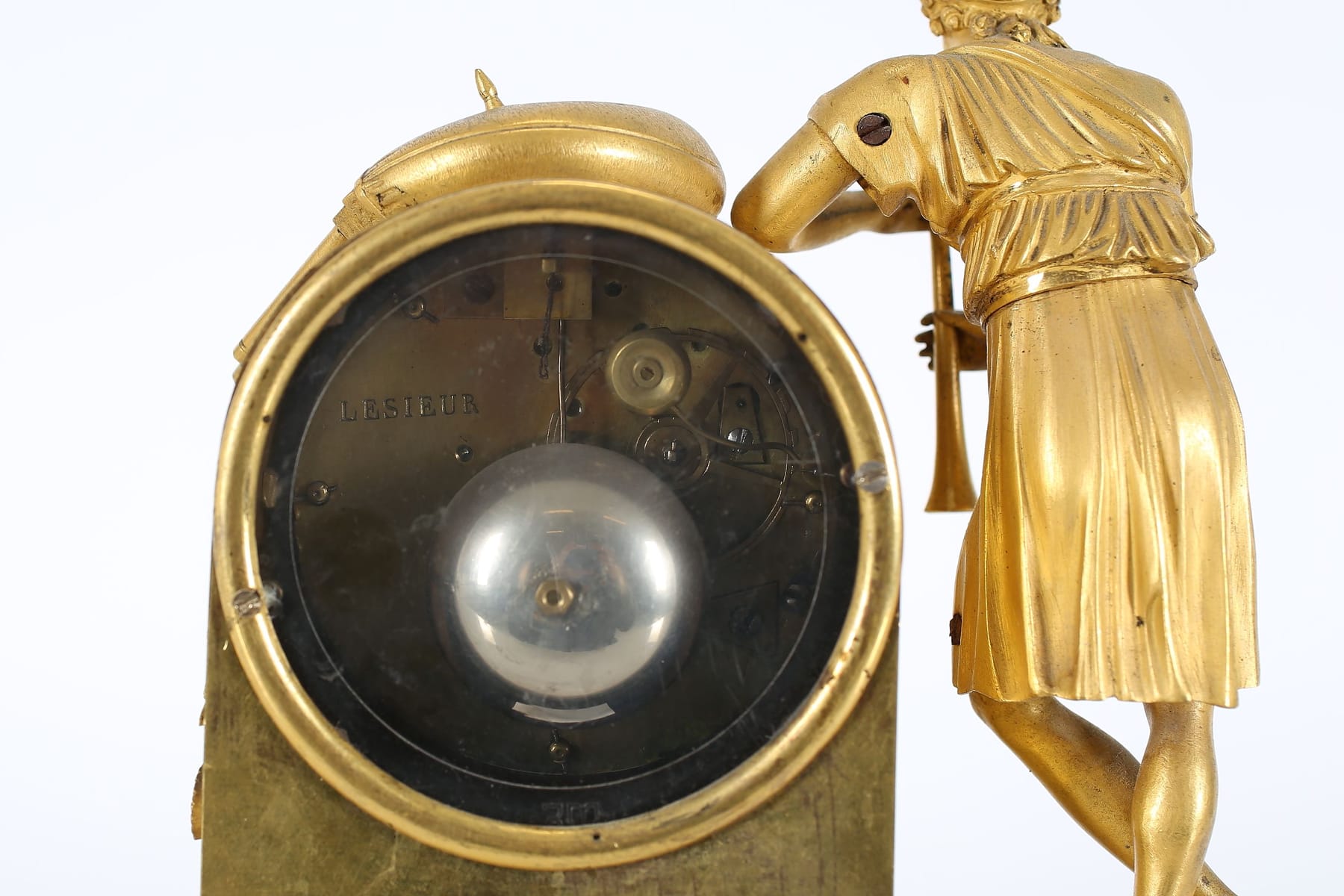BORDSPENDYL, mässing, empire, urverk Lesieur, 1810/1820-tal
