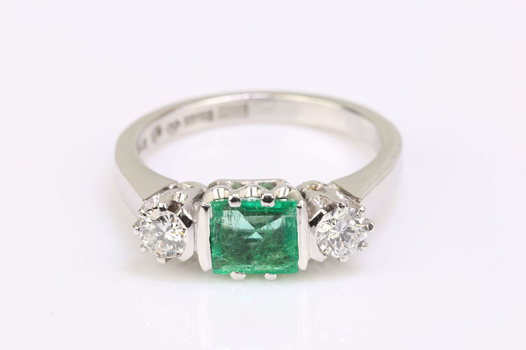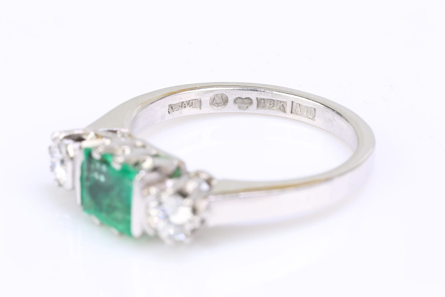 Bilder RING med smaragd och diamanter, vitguld, 18 k, ca 5,03 g, E A Thomasson Ab, Stockholm, 1975