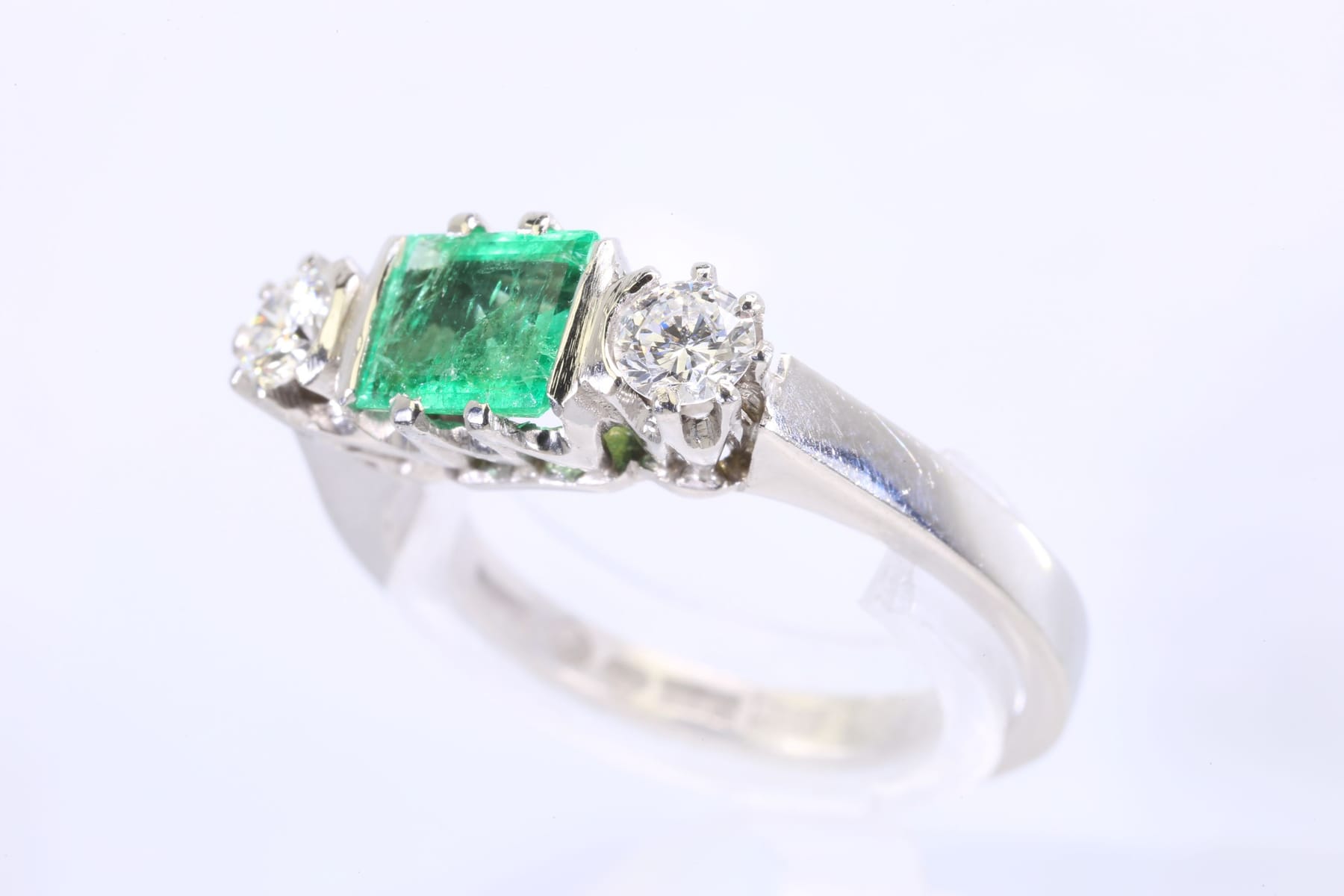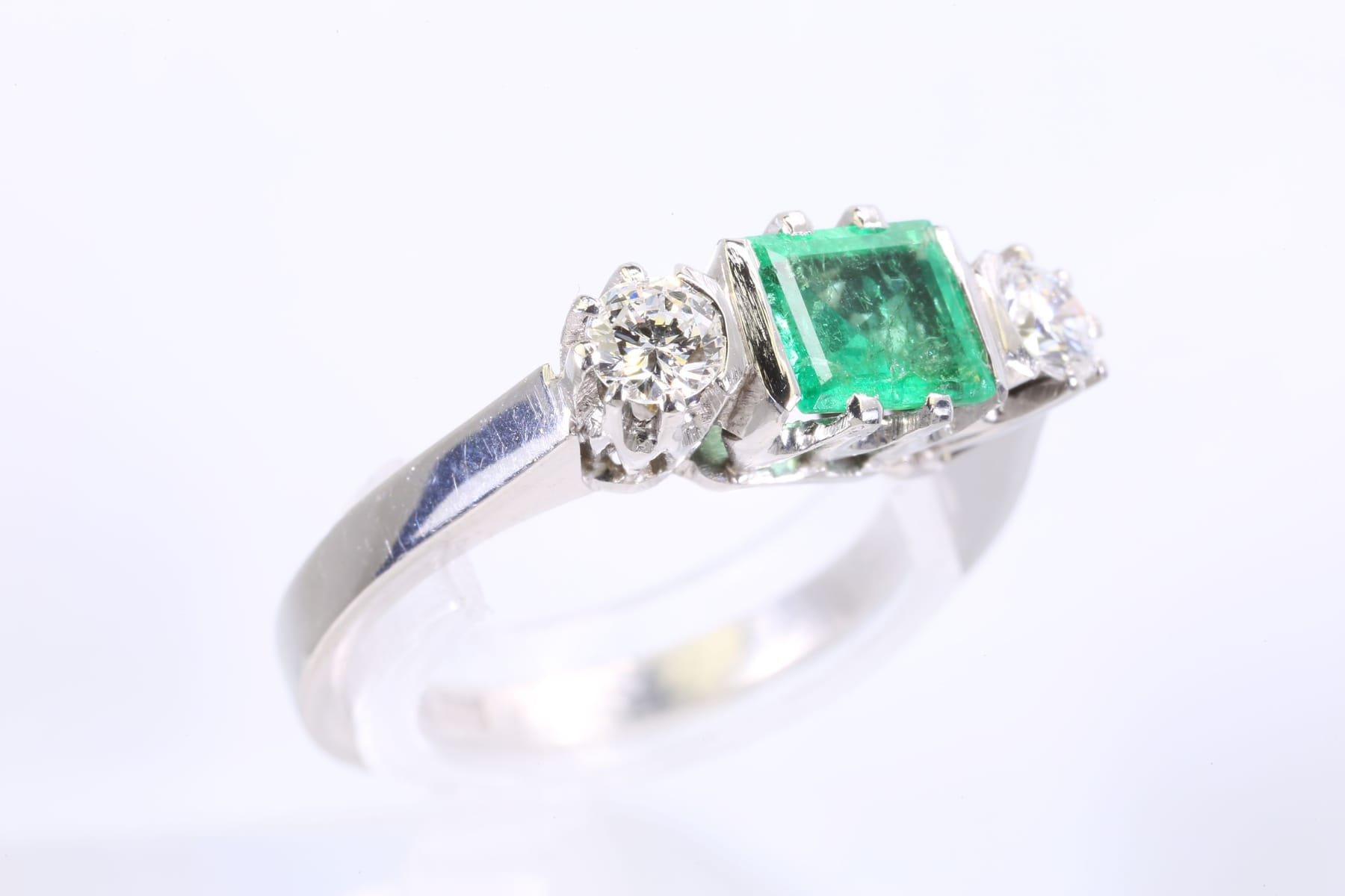 RING med smaragd och diamanter, vitguld, 18 k, ca 5,03 g, E A Thomasson Ab, Stockholm, 1975