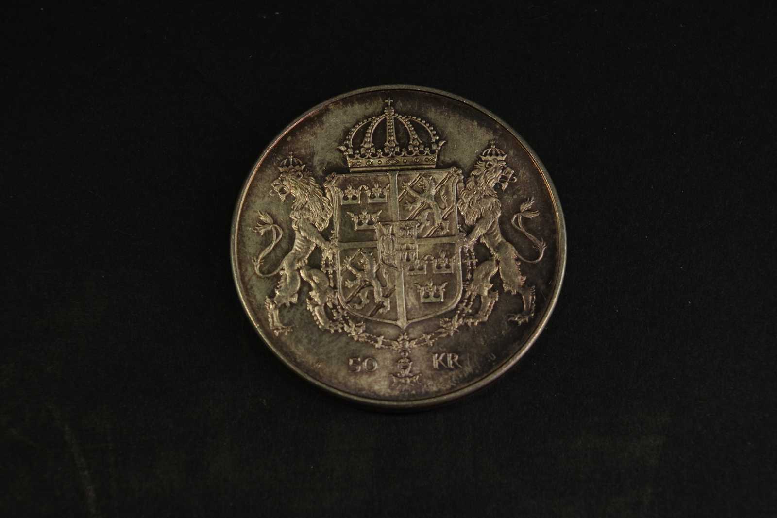 Auktioner Guld, Silver & Smycken MINNESMYNT silver 92,5% 50:-, 1976 Bröllopet mellan kung Carl XVI Gustaf och drottning Silvia