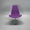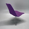 Fåtölj från Offecct, modell Spoon. Designad av Monica Förster. Hög rygg är klädd i ett slitstarkt lila tyg med snurrstativ i krom.