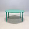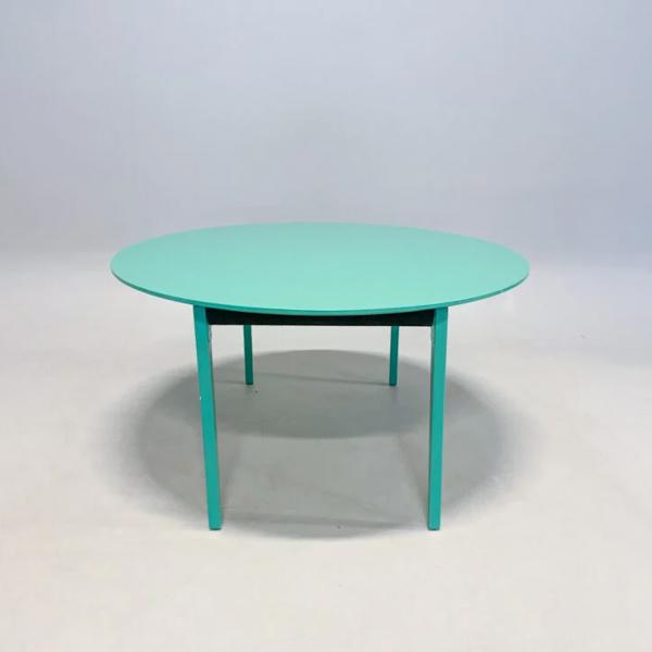 Runt fällbord från Karl Andersson & söner, modell Press. Designat av Lars Pettersson och Morgan Rudberg. Grönlackerad bordsskiva och massiva fällbara träben i samma utförande.