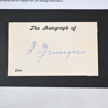 Signerad autograf av Andrej Andrejevitj Gromyko, sovjetisk politiker och diplomat, en av kalla krigets mest inflytelserika utrikespolitiska aktörer. Autografen är utförd i blått bläck med signaturen “A. Gromyko” och är monterad tillsammans med ett informativt biografiskt blad på svart kartong.