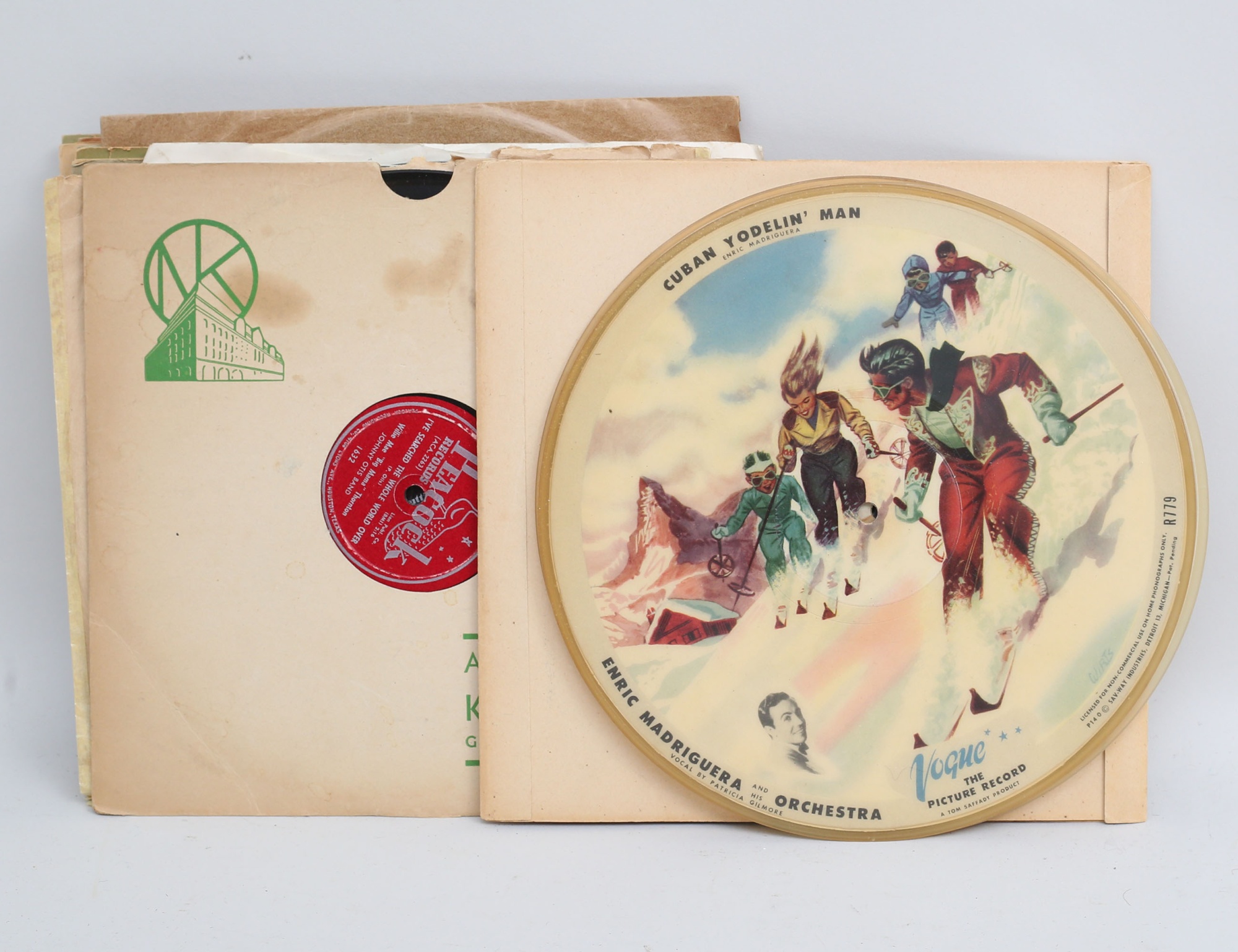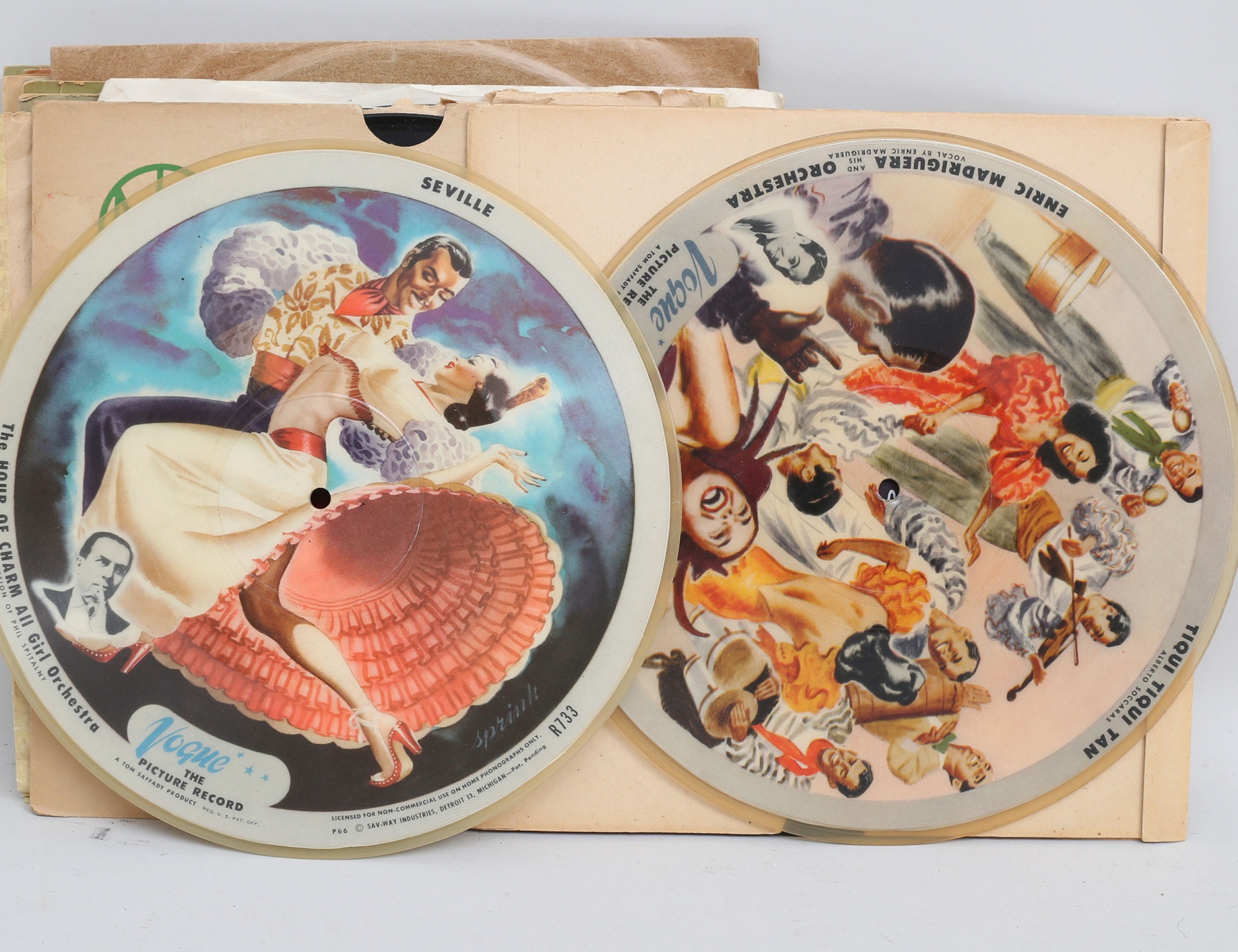 3 bildskivor "Vogue the picture record", bla. 2 Enric Madriguera, stenkaka The Platters, Little Richard, Elvis Presley, Bull Haley