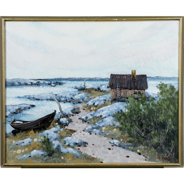 Bilder Sven Erik Lund, stuga vid havet, olja pÄ duk