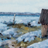 Sven Erik Lund, stuga vid havet, olja pÄ duk