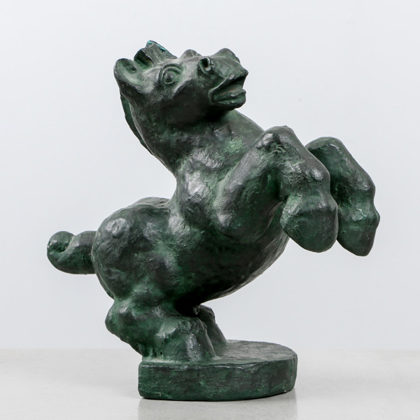Skulptur, stegrande häst, bemålad gips, signerad S Edberg, 1900-talets mitt