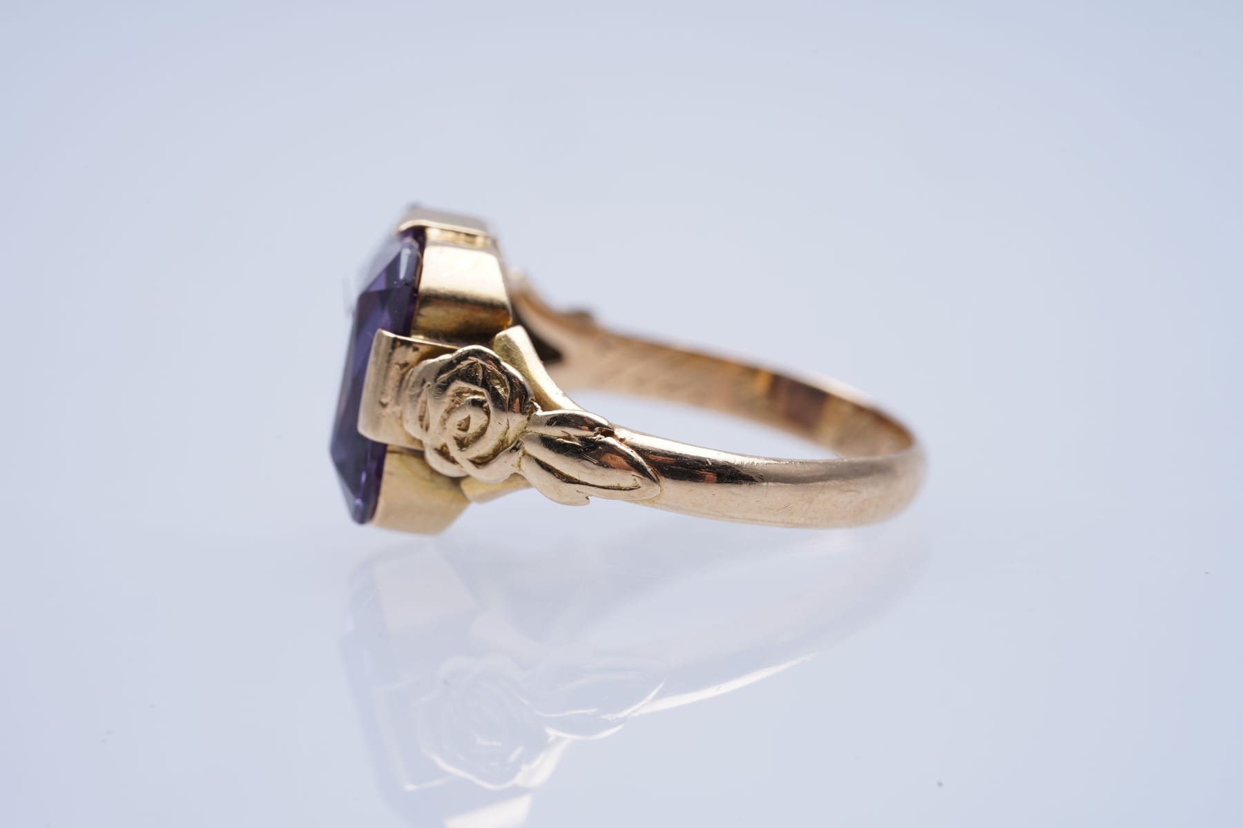 Sormus/pikkurillisormus, kultaa ja ametisti