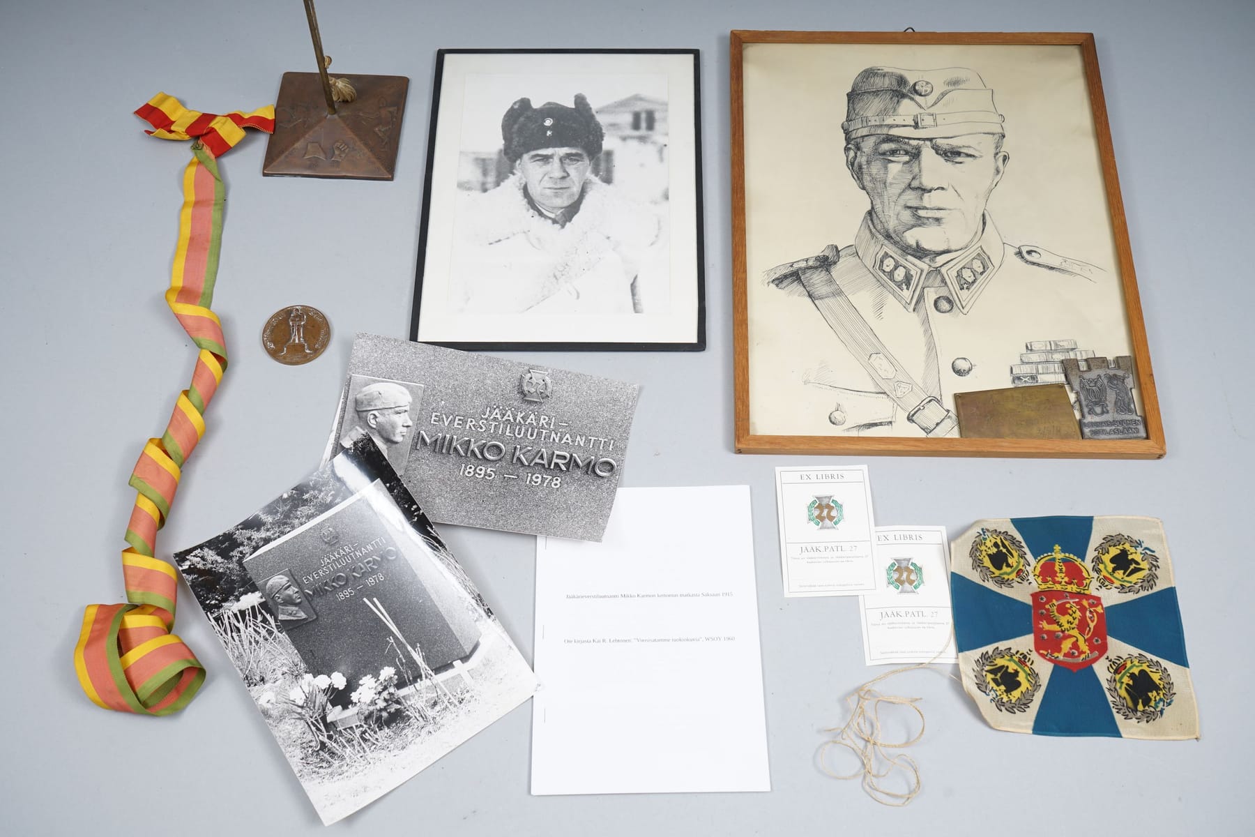 Jääkäri-Everstiluutnantti Mikko Karmo (Gunnar Dahl), valokuvia, muotokuva ym. esineistöä
