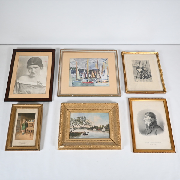 Bildmått 15 x 10 - 28 x 20 cm. Bla olja på pannå, akvarell och kopparstick.