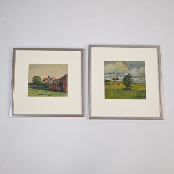 Bildmått 16 x 19 och 19 x 20 cm. Signerade och daterade Bror Eriksson 1951 och 1957. Akvarell och tusch med akvarell. Uppsalamotiv. Vaksala, 40-tal. Ångelstagård, Vaksala.