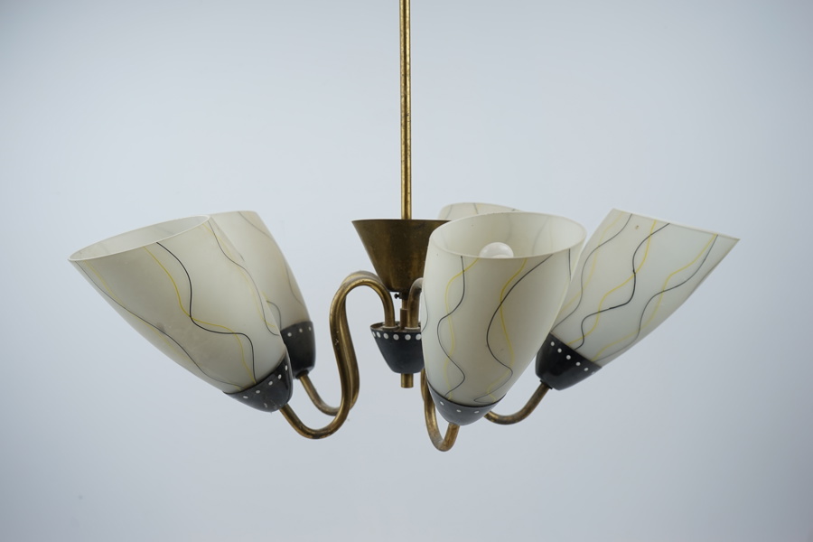 Bilder Taklampa, 5 ljuspunkter, metall/glas, 1900-talets mitt.
