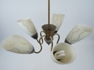 Taklampa, 5 ljuspunkter, metall/glas, 1900-talets mitt.