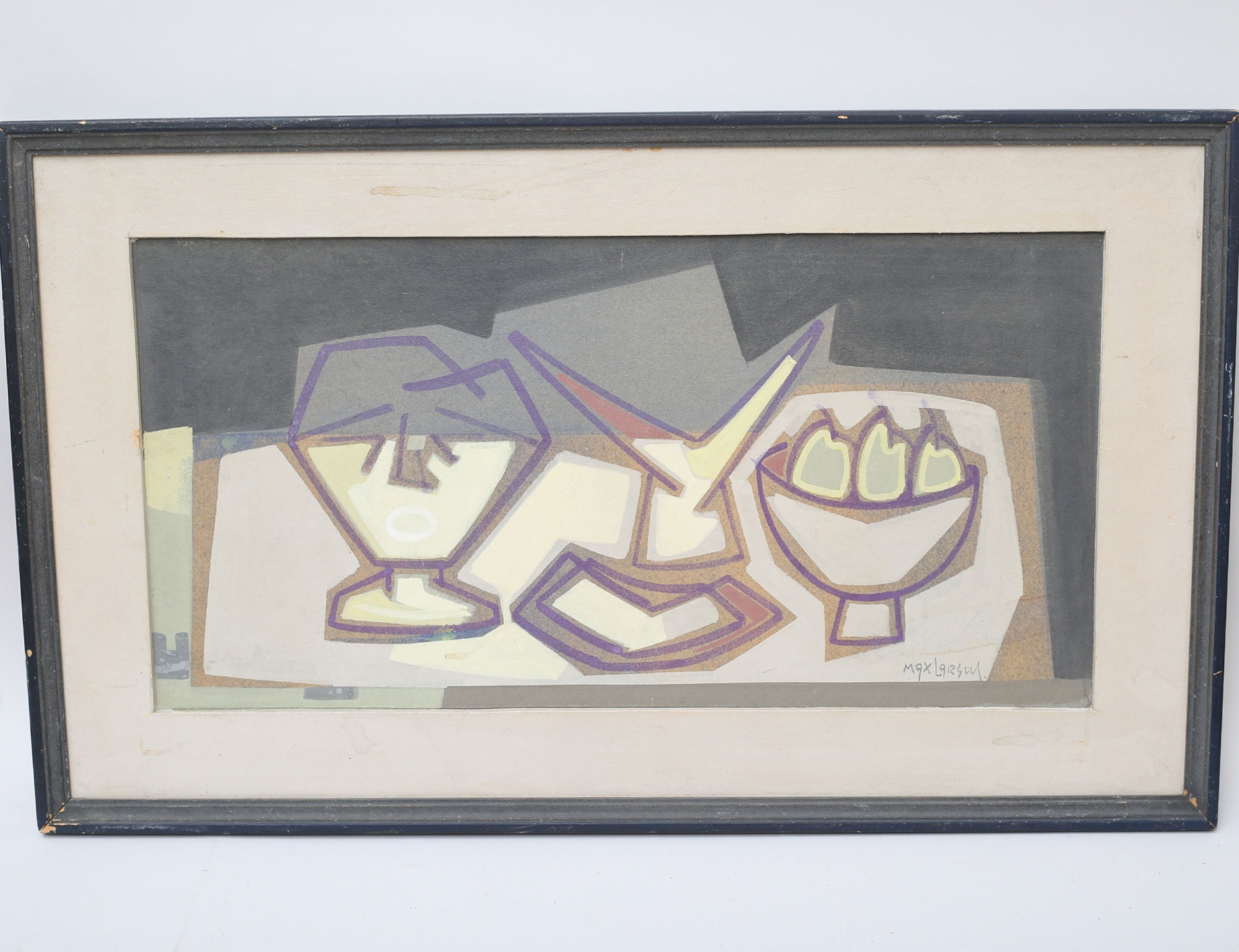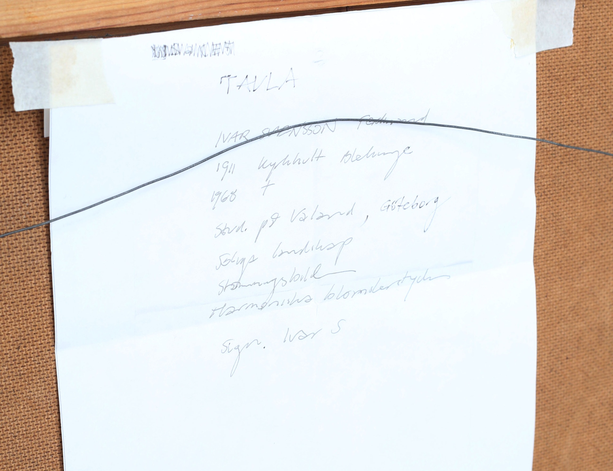 blandteknik på papperspannå, "Stilleben keramik" 1962, signerad, Ivar Svensson oljemålning på pannå, landskap, signerad, rammått 37x50 (2)