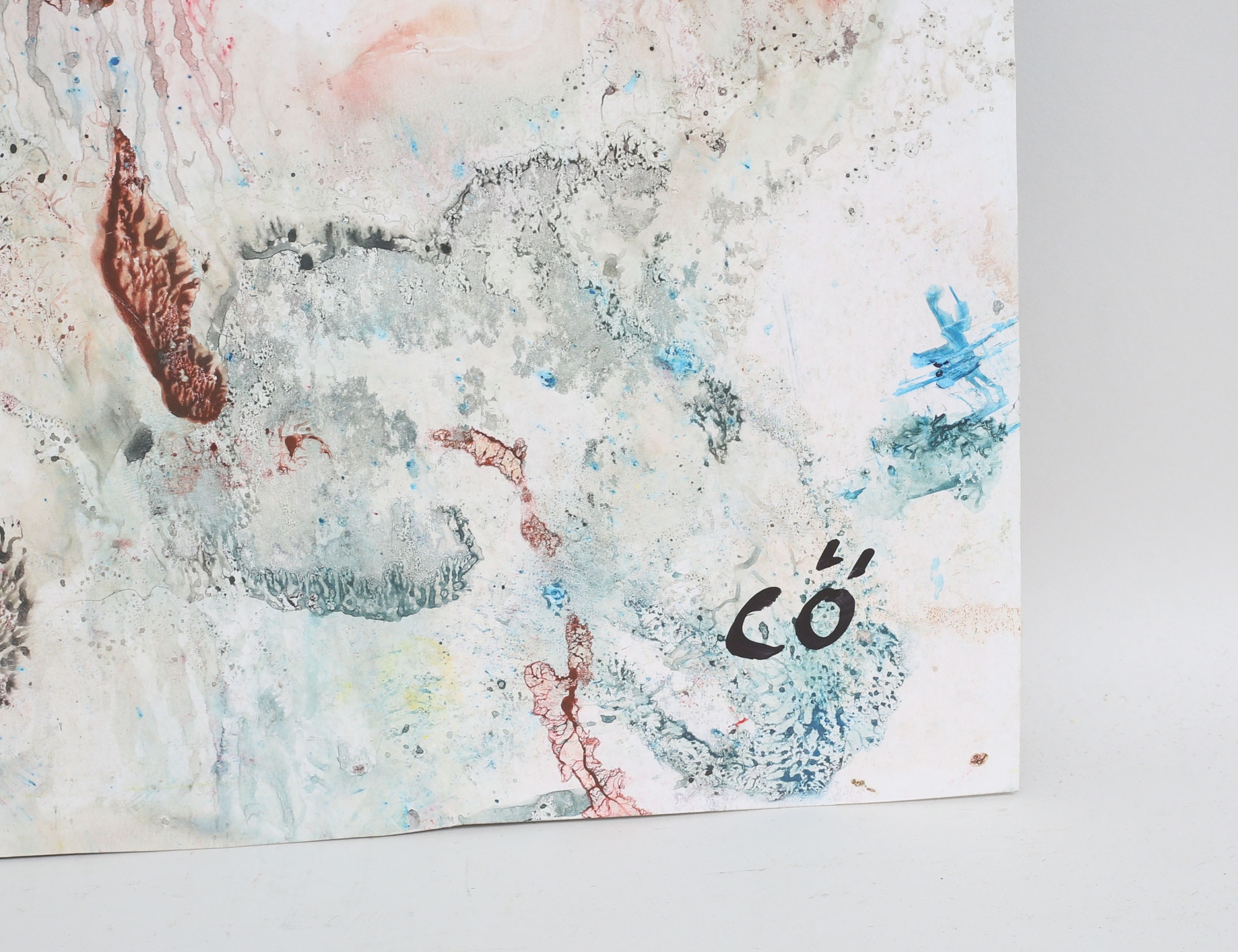 blandteknik, komposition, målning på båda sidorna varav ena monogramsignerad, oramad, 68x48
