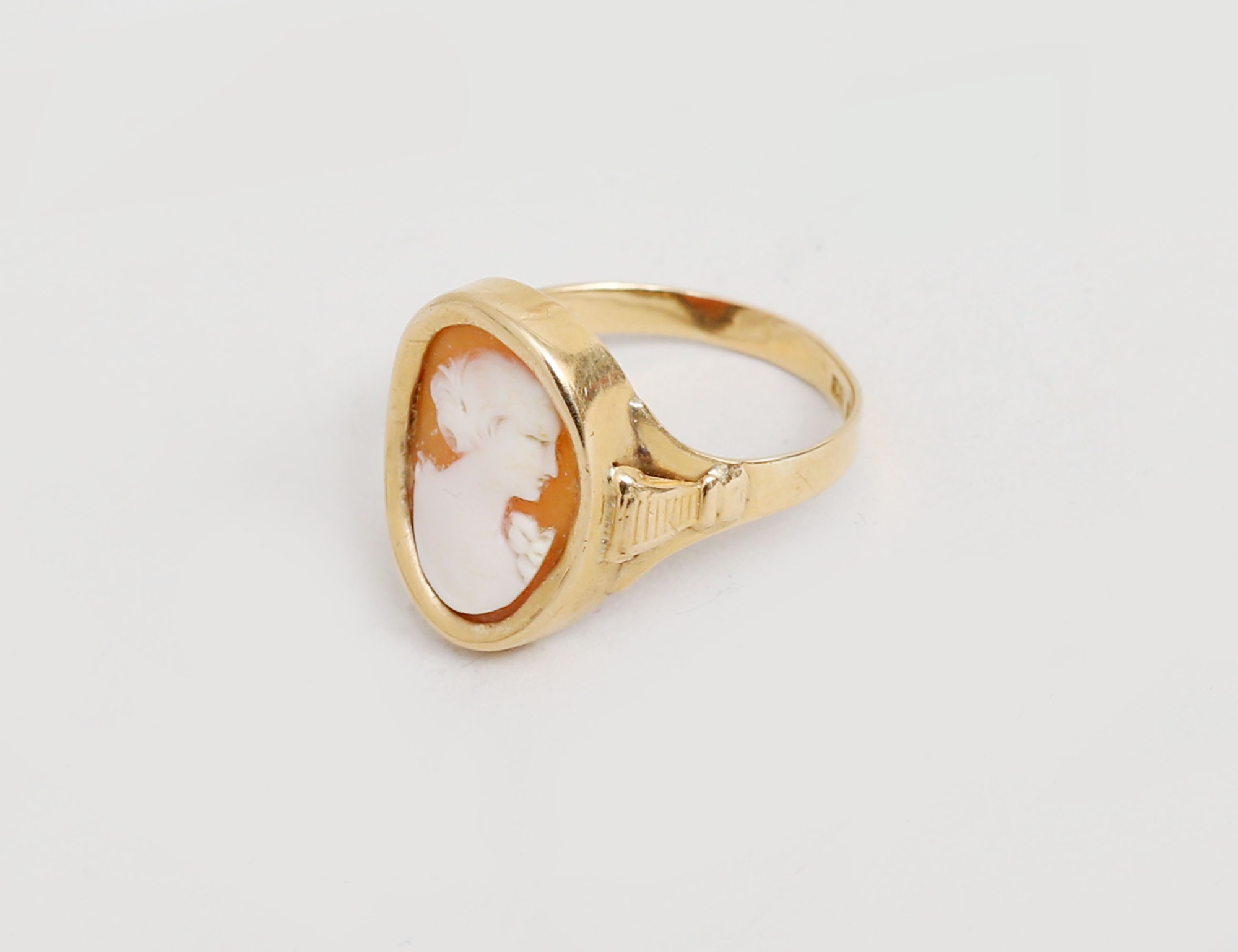med camé, stämplad Svedboms Guldsmeds AB Vetlanda 1945, storlek 19/60, vikt 4,35 gram