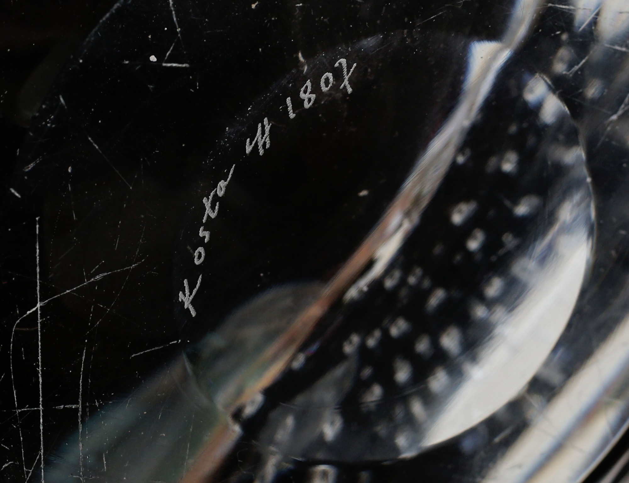 fat klarglas med dekor av små luftblåsor, 24x20, vas underfång, höjd 15,5 (repor) (2)