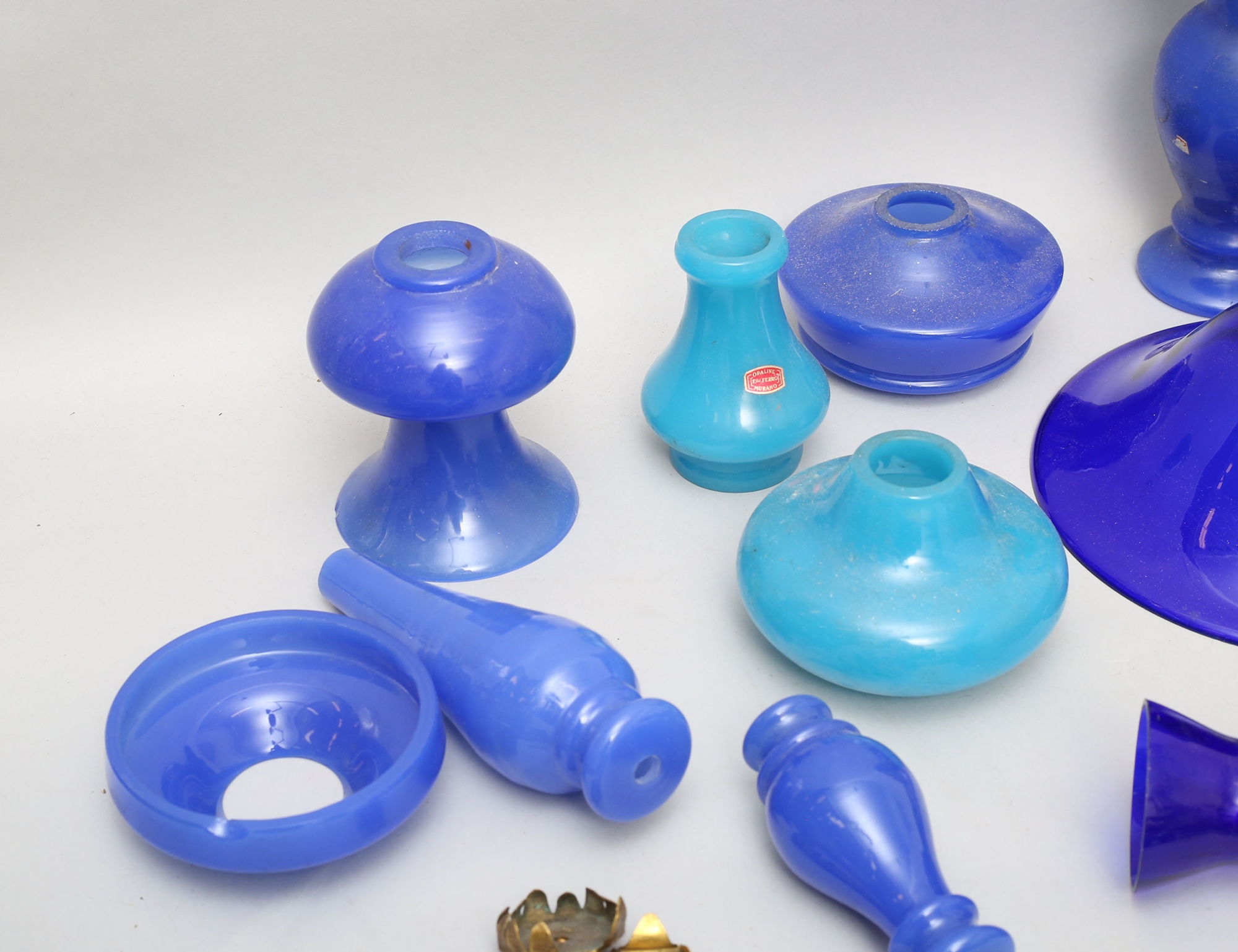 blått/turkos opalinglas, några etikettmärkta Murano Italien, proveniens: Neumans Antikhandel Stockholm (skador förekommer)