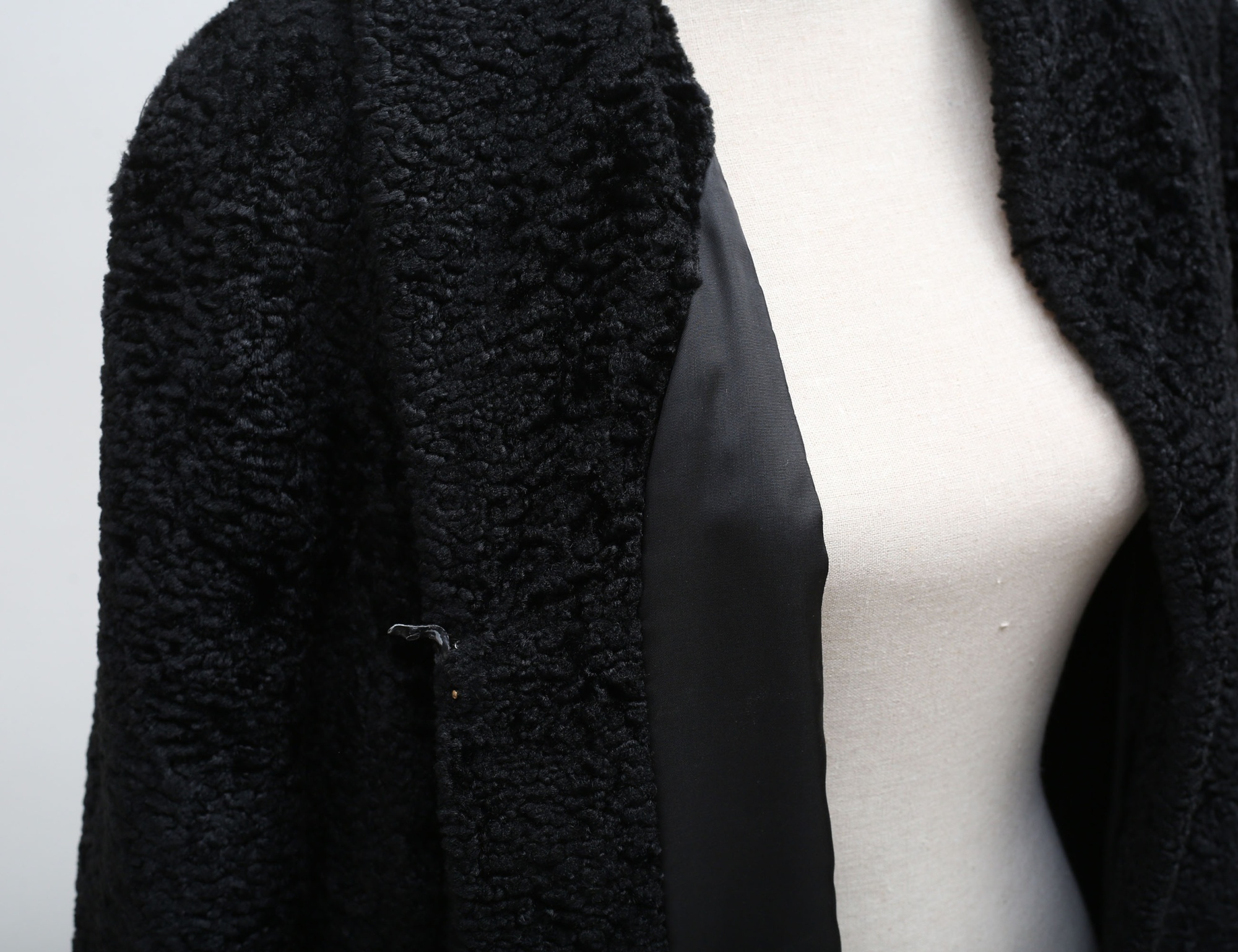 swaggermodell, svar såkallad fuskpäls, etikettmärkt, gott skick, rygglängd 89, storlek 42/44