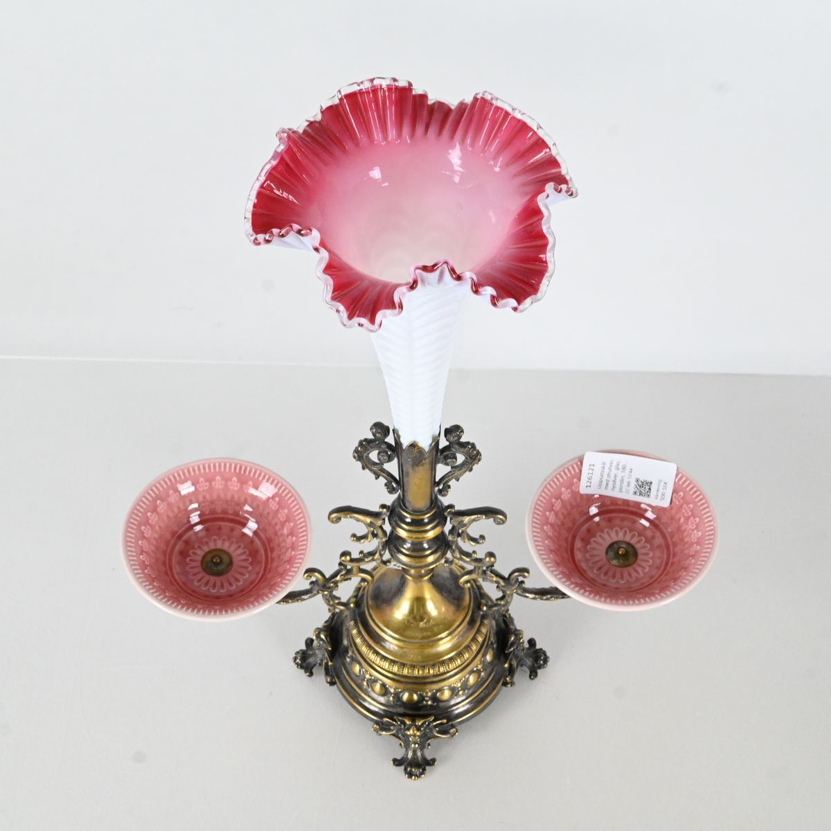 Bilder Uppsatsskål med strutvas, nysilver, glas, porslin, 1800 tal