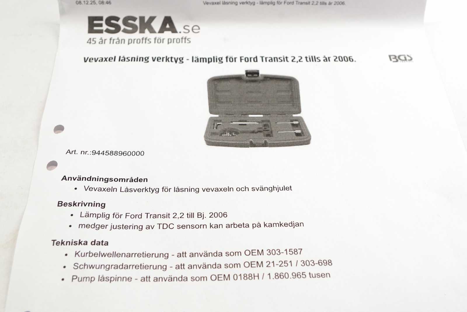 Bilder LÅSVERKTYG VEVAXELN lämplig för Ford Transit 2,2 tills år 2006 Nytt OBS! 25% moms tillkommer på klubbat pris.