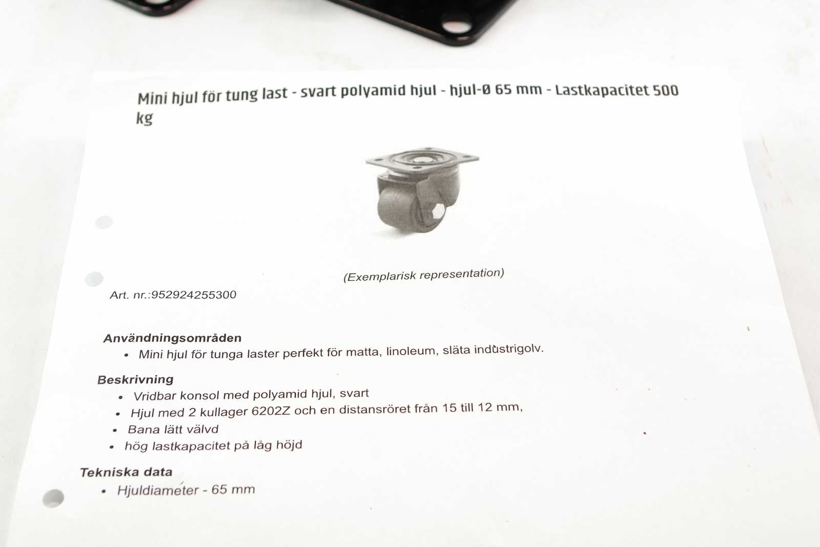 Bilder MINIHJUL för tung last D:65 mm lastkapacitet 500 kg Nytt OBS! 25% moms tillkommer på klubbat pris.