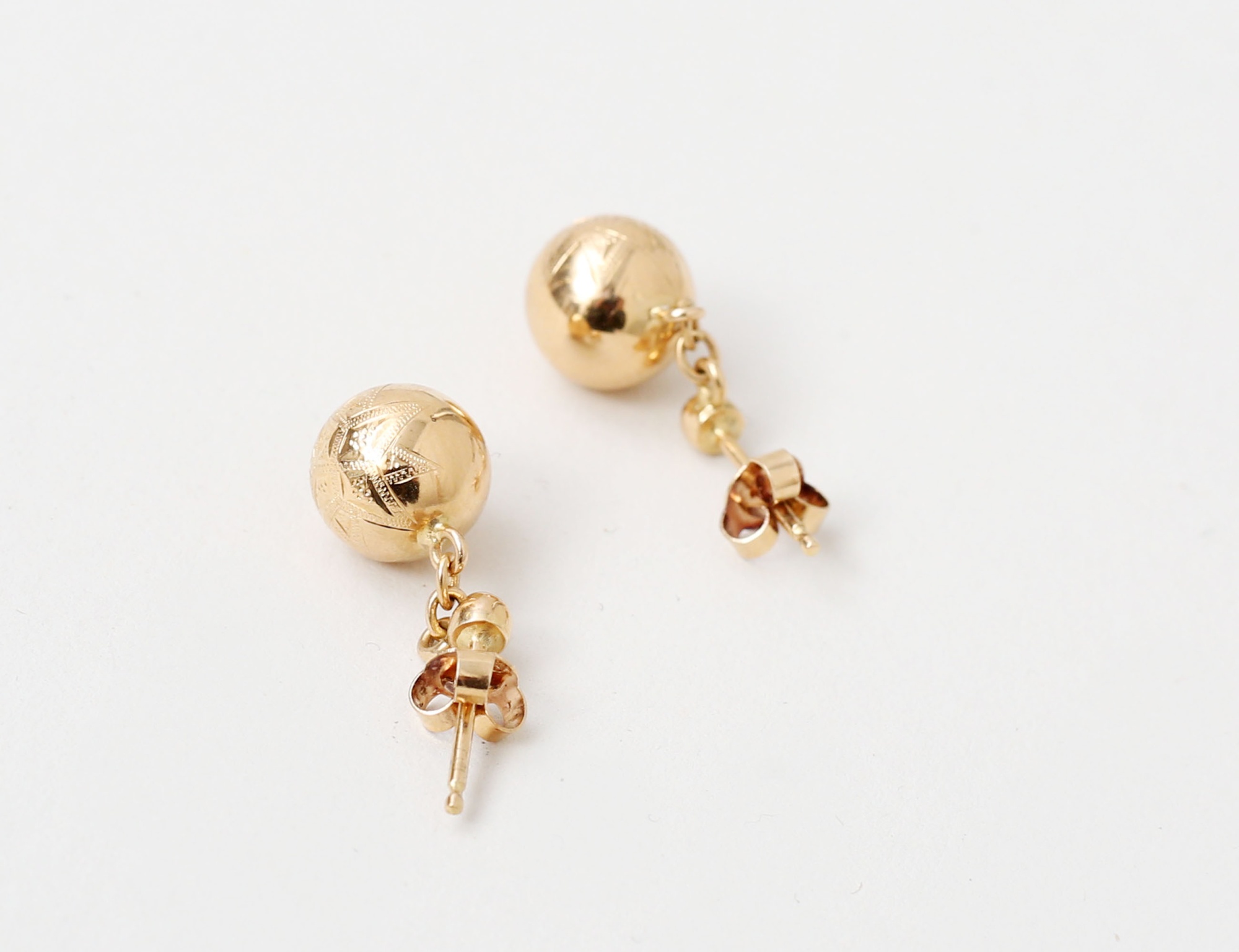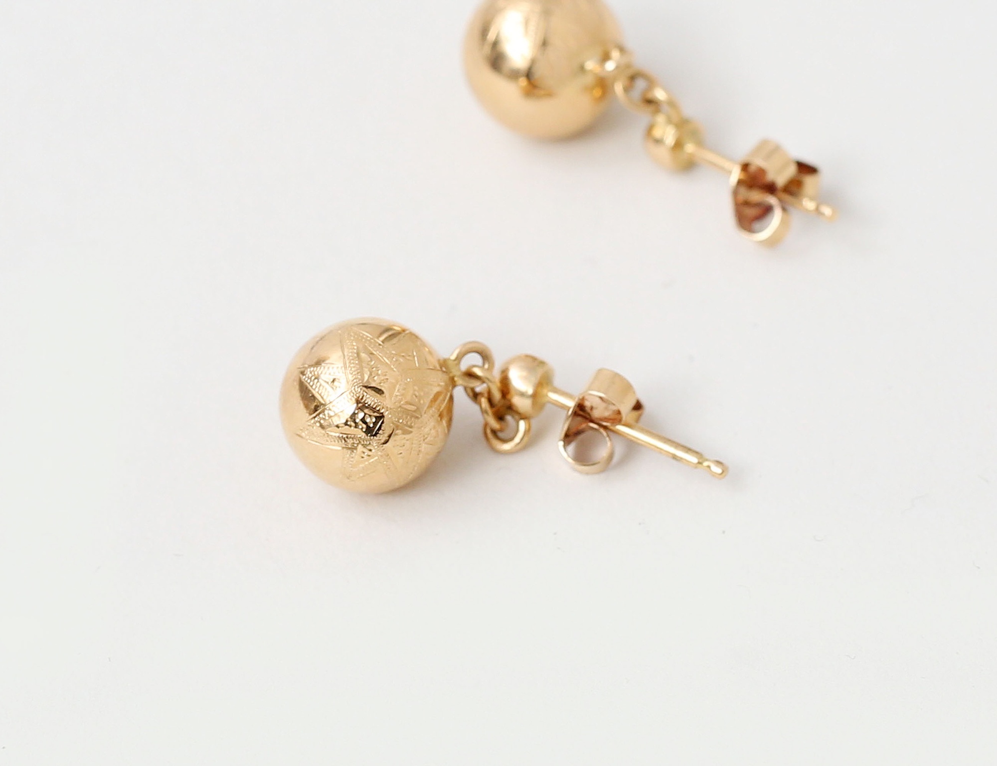 hängande kulor med graverad dekor, vikt 2,76 gram, diameter 0,5