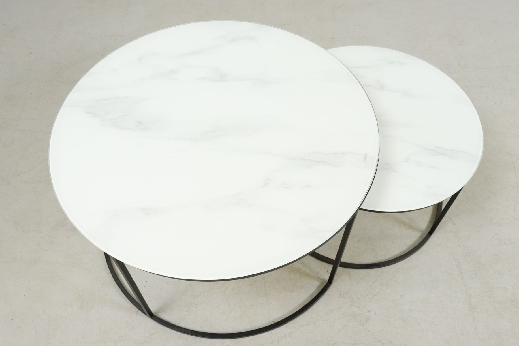 Soffbord, 2 delar, marmorimitation glasskiva i metallstativ