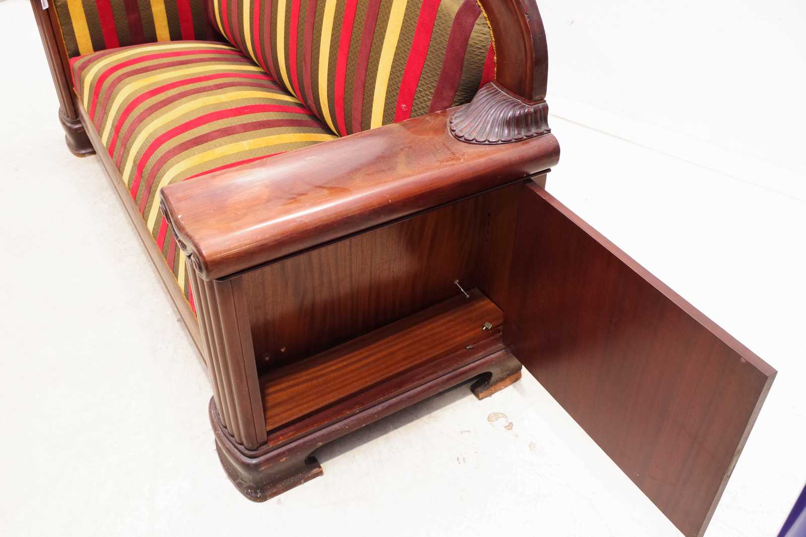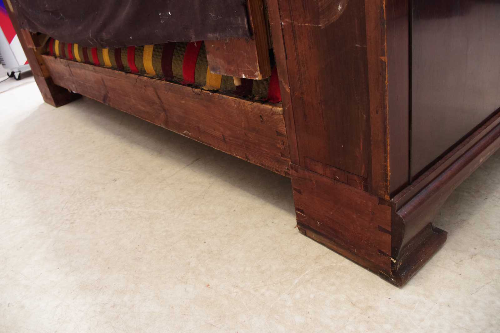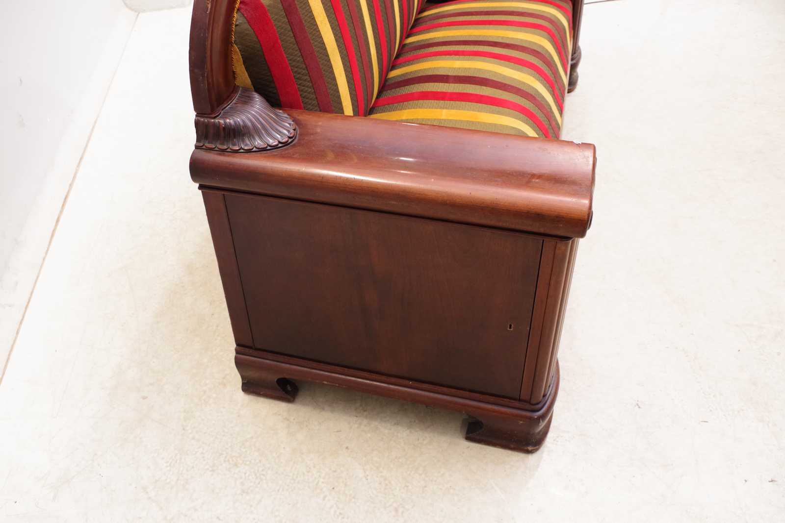 Bilder SOFFA med BARSKÅP i armstöd. 1800 tal. B:208cm. Går att plocka isär i fyra delar.
