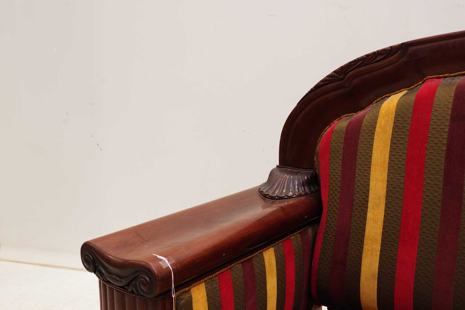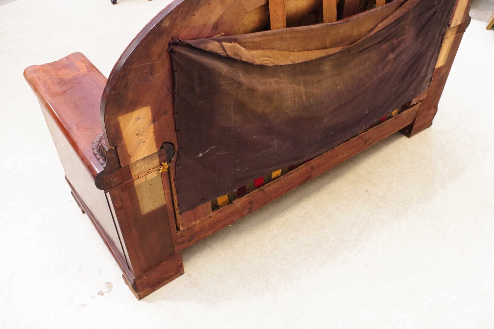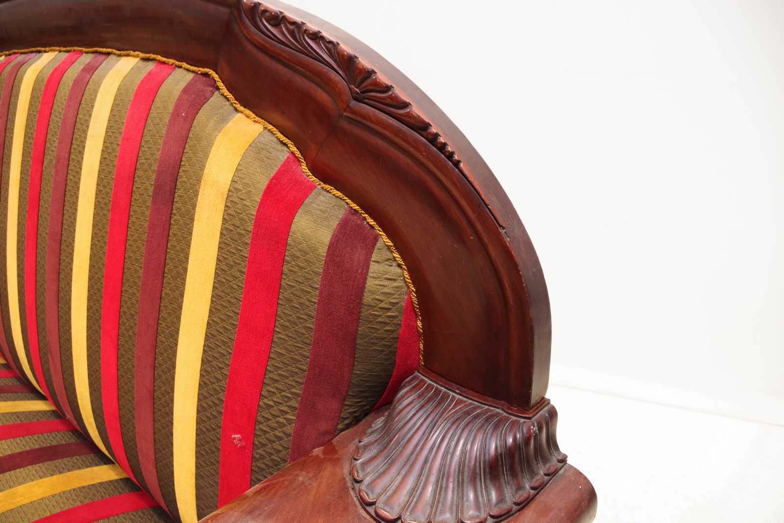 Bilder SOFFA med BARSKÅP i armstöd. 1800 tal. B:208cm. Går att plocka isär i fyra delar.