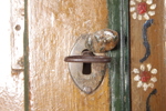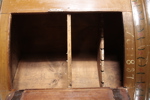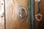 Delbart. Bär datering: 1837Senare bemålningar. Överdel: Dörr med bakomliggande skedholk & hyllplan. Nedtill: Dörr med bakomliggande hyllplan. Originallås & beslag.Nyckel medföljer. H= 190cm B= 95cm Djup= 55cm